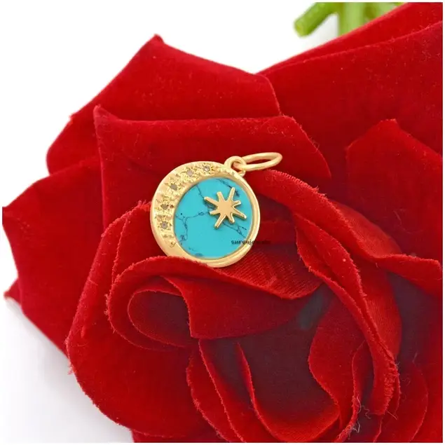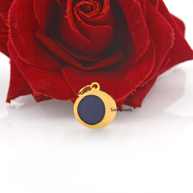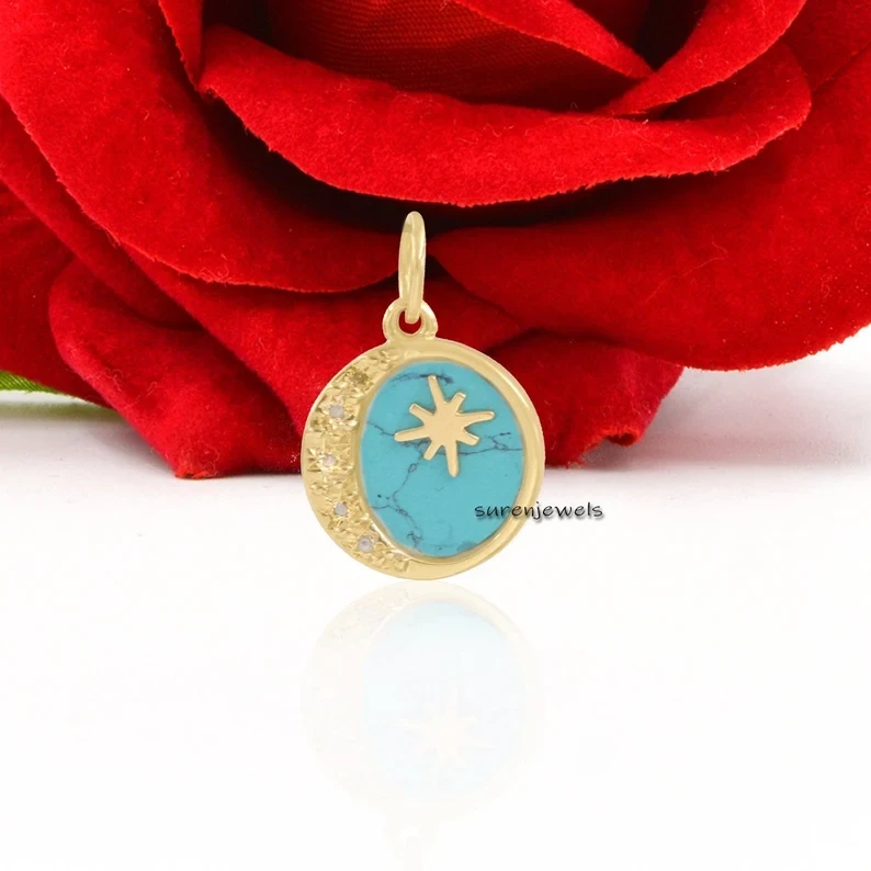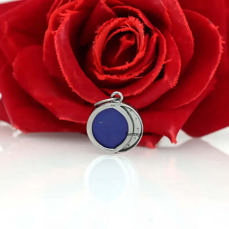 Elegant 14K gold and 925 silver moon disc pendant featuring lapis lazuli, moissanite, and celestial star-moon design. Perfect for charm holders, necklaces, and wholesale jewelry collections. Premium craftsmanship by Suren Jewels.