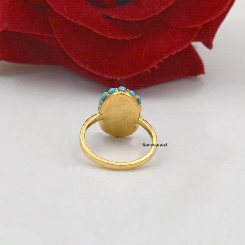 Stunning 14K gold oval-shaped Arizona turquoise ring. Natural gemstone with a designer handmade touch. Perfect statement piece. Wholesale prices at Suren Jewels.