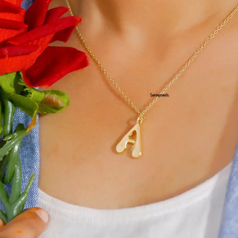Crafted in 14k solid gold, this dainty bubble letter pendant adds a personalized touch to any jewelry collection. Perfect for charm Prndant and necklaces, it's a chic statement piece for everyday wear.