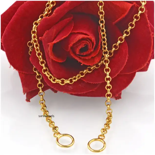 Discover our 14K Gold Carabiner Rolo Chain, featuring a round lock and shackle lock design. Crafted from high-quality yellow gold, this 3MM thick chain is perfect for necklaces, charm holders, and bracelets. Available at wholesale prices from Suren Jewels.