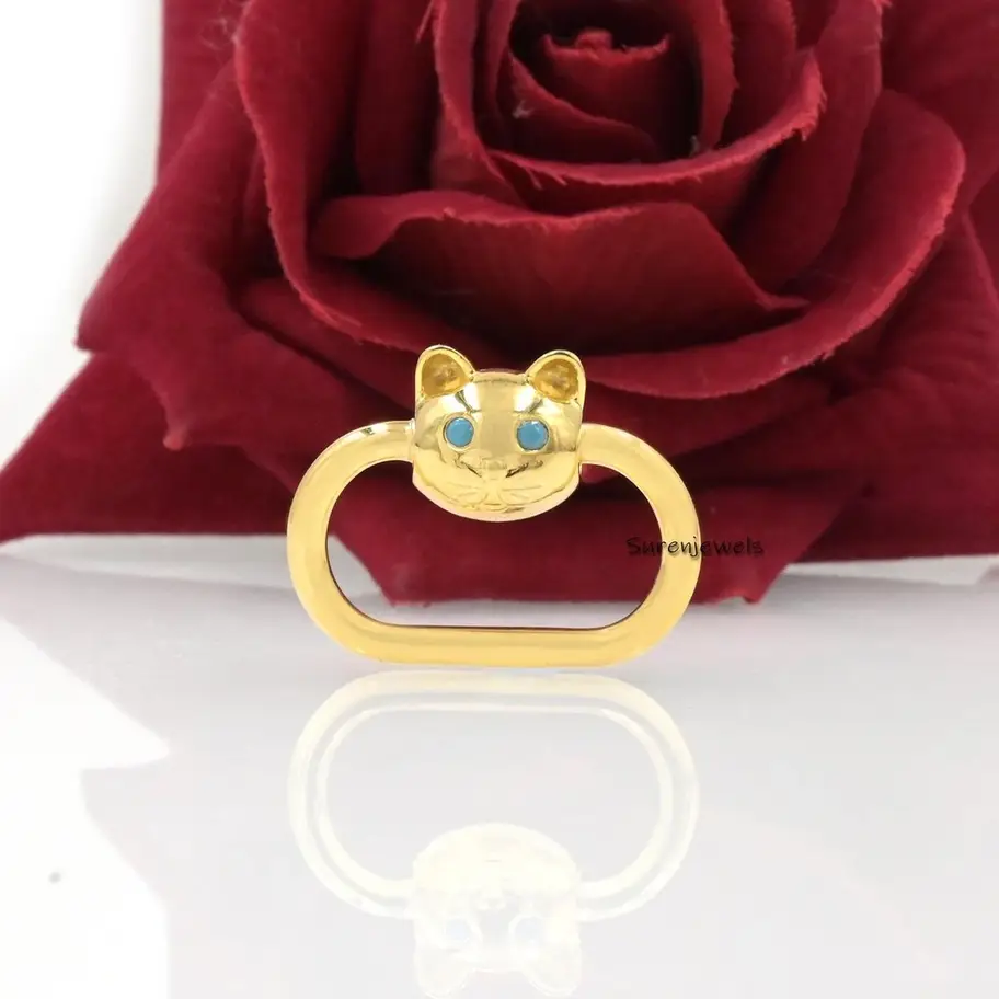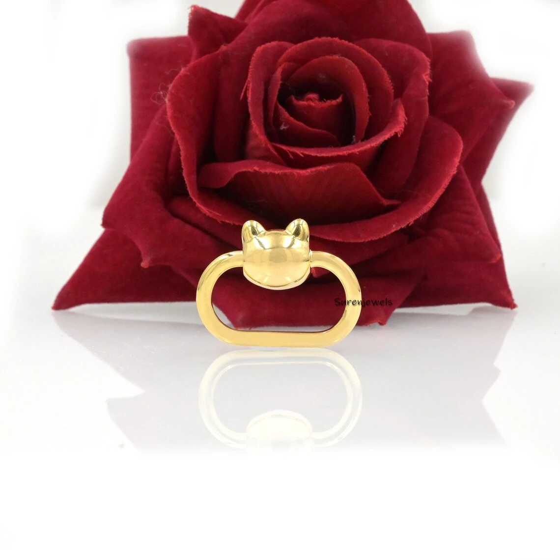 Enhance your jewelry collection with this 14k gold cat carabiner lock, featuring dazzling diamonds. A perfect charm holder, this handmade carabiner pendant adds elegance and versatility to necklaces and bracelets.