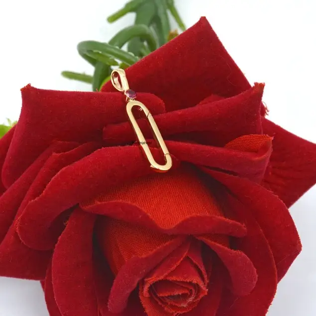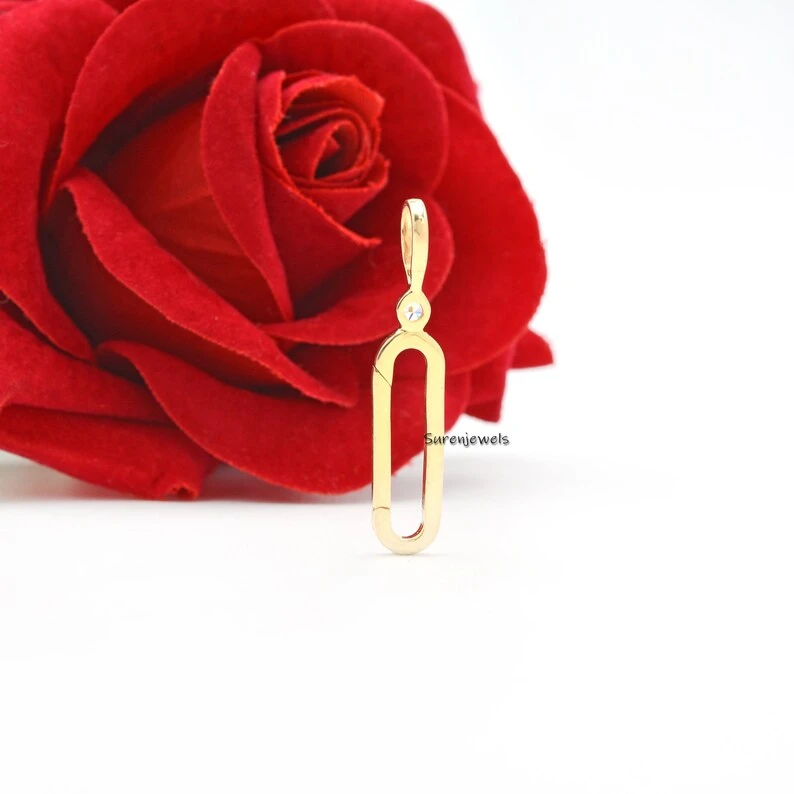 Suren Jewels presents a 14k gold charm enhancer lock, perfect for paperclip necklaces. This yellow gold charm holder secures charms stylishly, adding elegance and versatility to your jewelry collection.