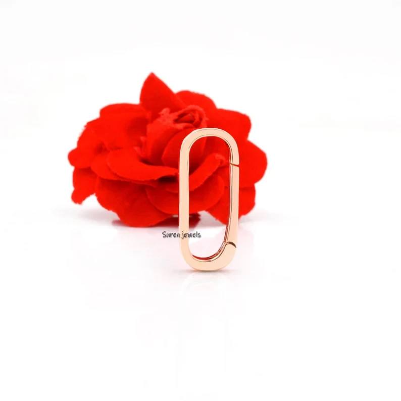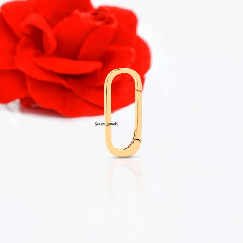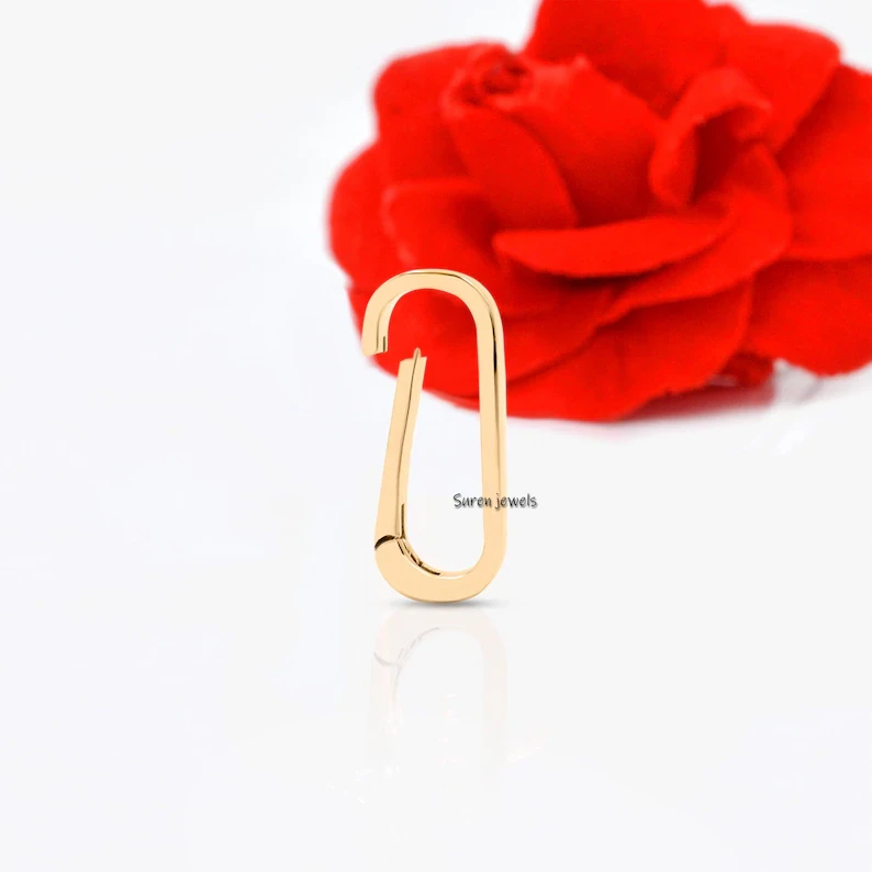 Suren Jewels presents a 14k gold charm holder with a removable hinged connector and push lock ring. Perfect for necklaces, earrings, and custom jewelry designs. Wholesale available.