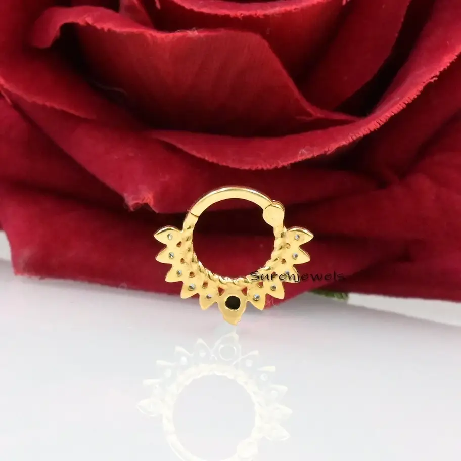 Elevate your style with this 14k gold cartilage piercing featuring a stunning aquamarine and black cubic zirconia design. Perfect for adding elegance to any look. Ideal for wholesale buyers seeking premium jewelry.
