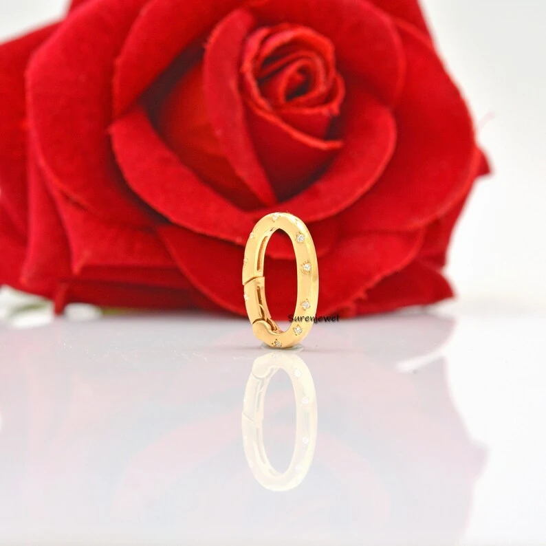 Shop Suren Jewels' 14K gold diamond clasp featuring a secure charm lock design. Ideal for necklaces and charms, adding elegance and functionality to your jewelry collection.