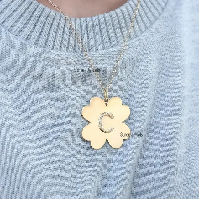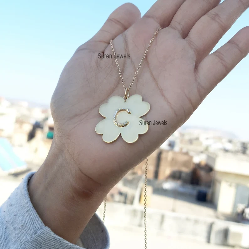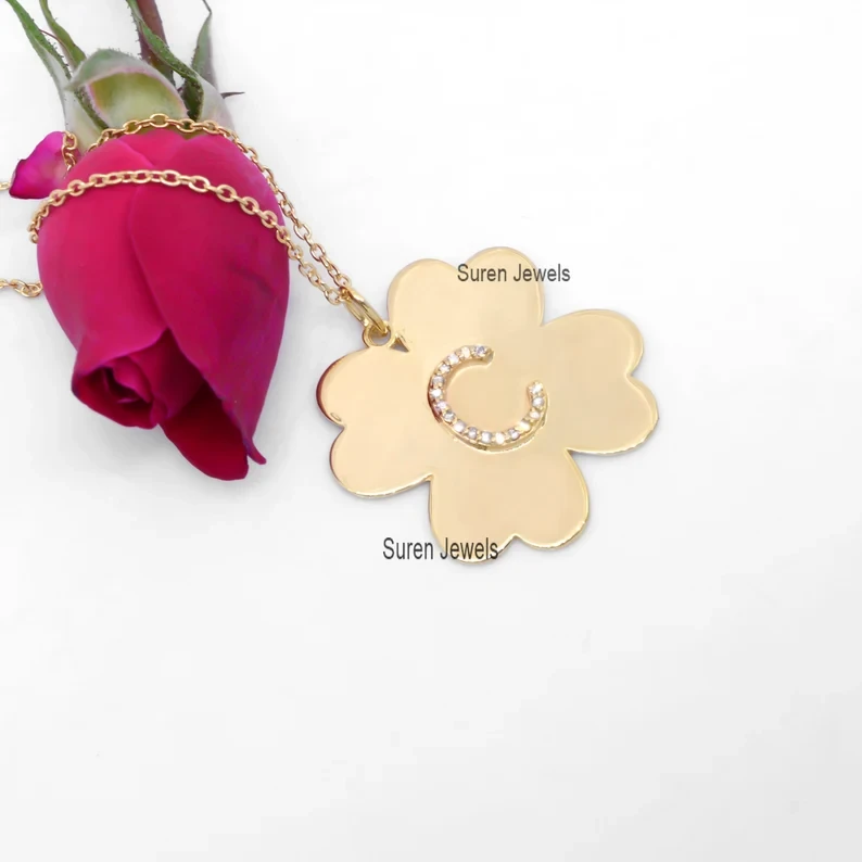 Elegant 14K gold diamond flower initial pendant featuring A to Z monogram letters. Perfect for personalized charm holders, necklaces, or gifts. Wholesale pricing available. Crafted with precision by Suren Jewels.