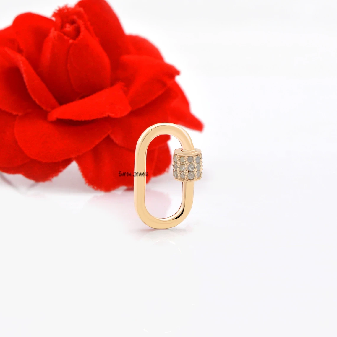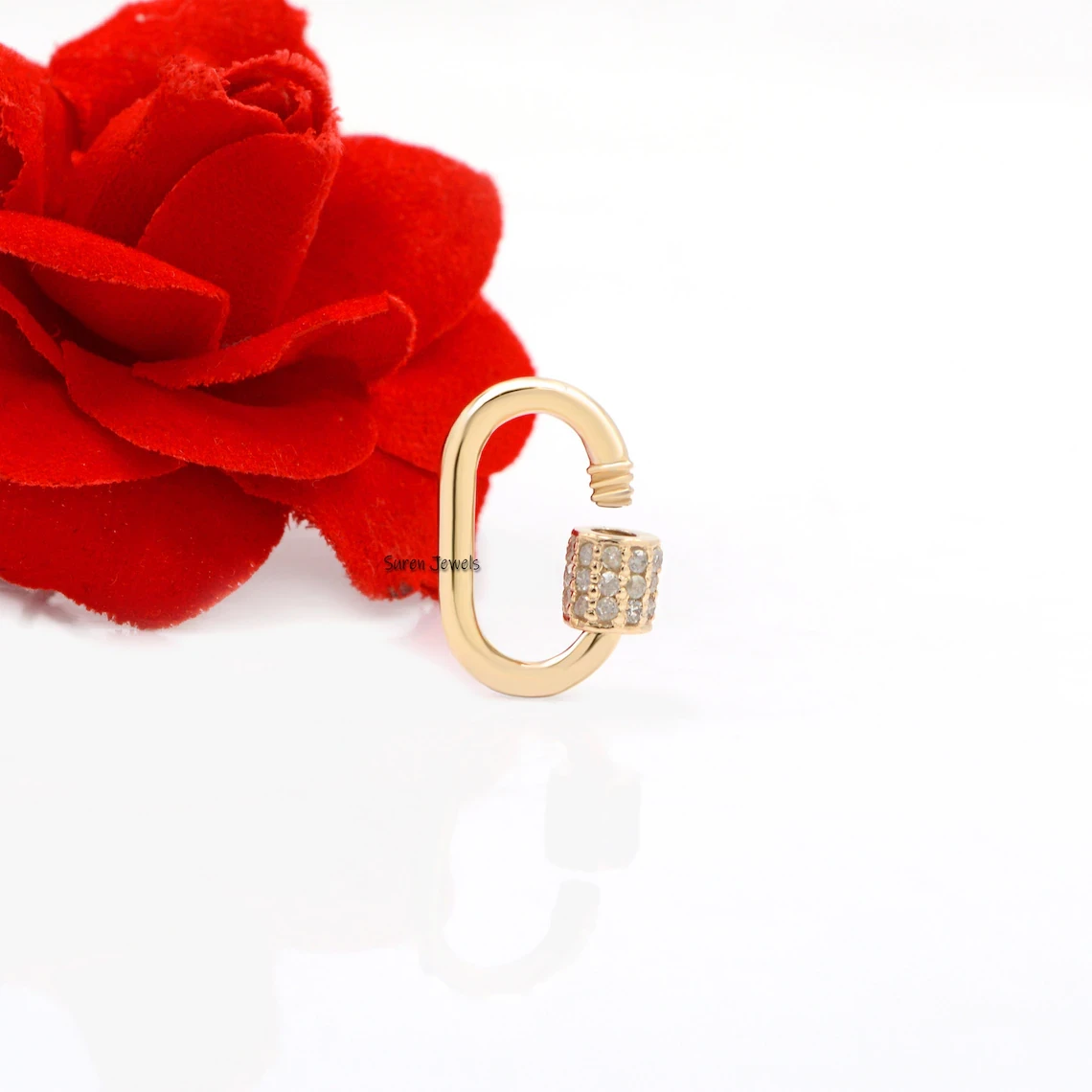Enhance your jewelry designs with this exquisite 14K gold diamond pave carabiner lock. Crafted for elegance and durability, it's perfect for charm holders, necklaces, and bracelets. Wholesale available.