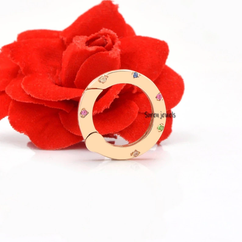 Enhance your jewelry designs with our 14K Gold Diamond Round Enhancer. Featuring a gemstone and gold pave design, it serves as a versatile charm holder and jewelry connector.