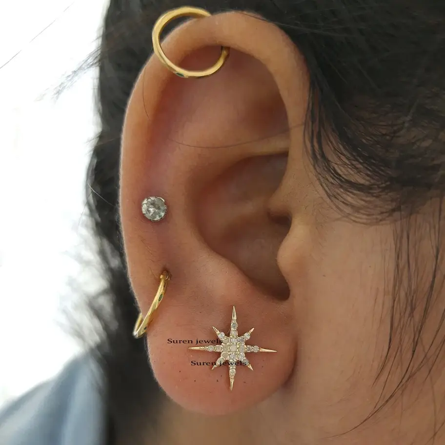 Shine with our exquisite 14k gold diamond starburst studs. These solid gold star earrings feature dazzling pave diamonds, offering timeless elegance. Perfect for charm lovers and jewelry retailers. Wholesale available at Suren Jewels.
