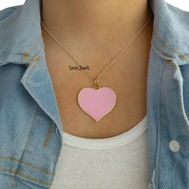 Celebrate the season with our 14K Gold Enamel Heart Pendant. A perfect Christmas heart charm, this enamel pendant adds elegance to any necklace or bracelet. Wholesale enamel jewelry by Suren Jewels.