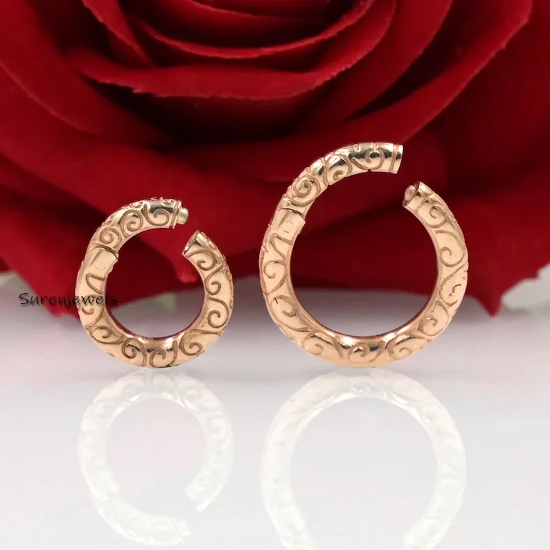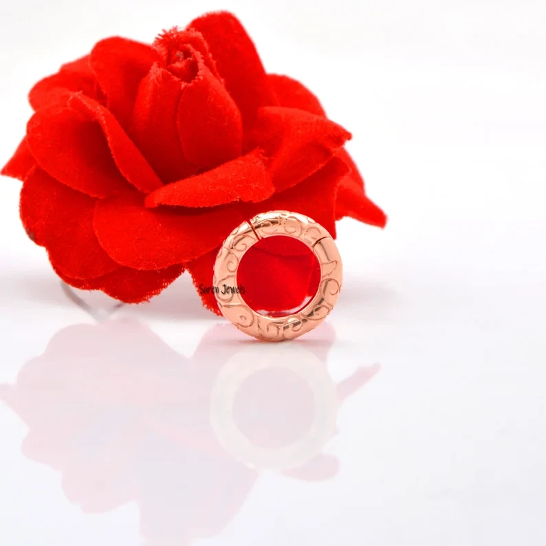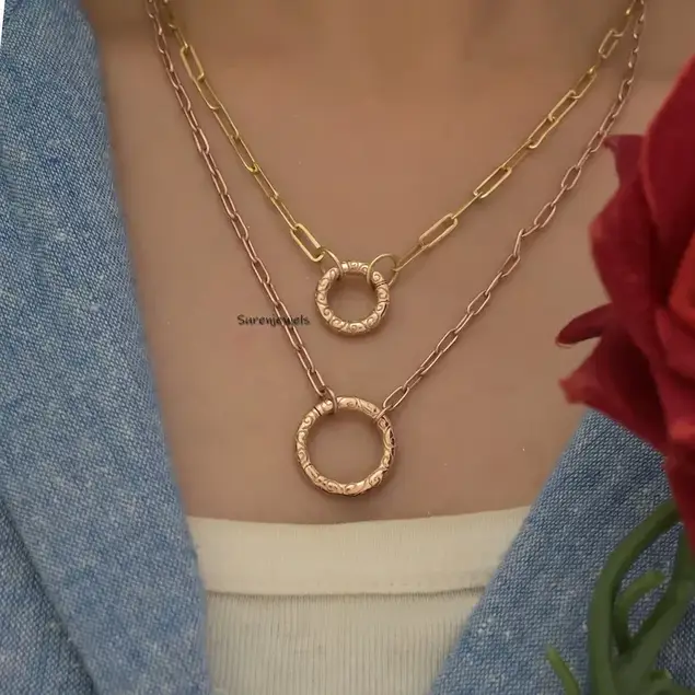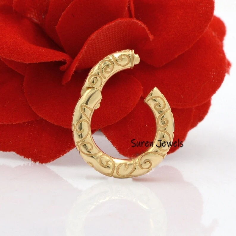 Enhance your jewelry with our 14k Gold Engraved Enhancer Lock. This versatile multi-push lock securely holds charms and pendants. Wholesale available. Perfect for charm holders and layered necklace designs.