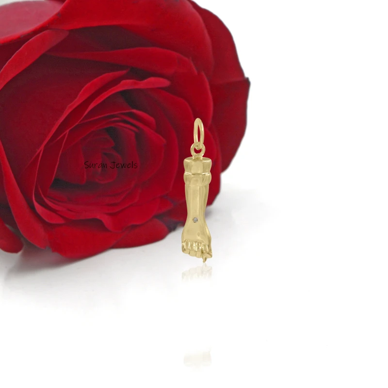 Crafted in 14K gold, this Figa Hand pendant symbolizes luck and protection. A perfect charm for necklaces or bracelets, ideal for wholesale buyers seeking meaningful jewelry.