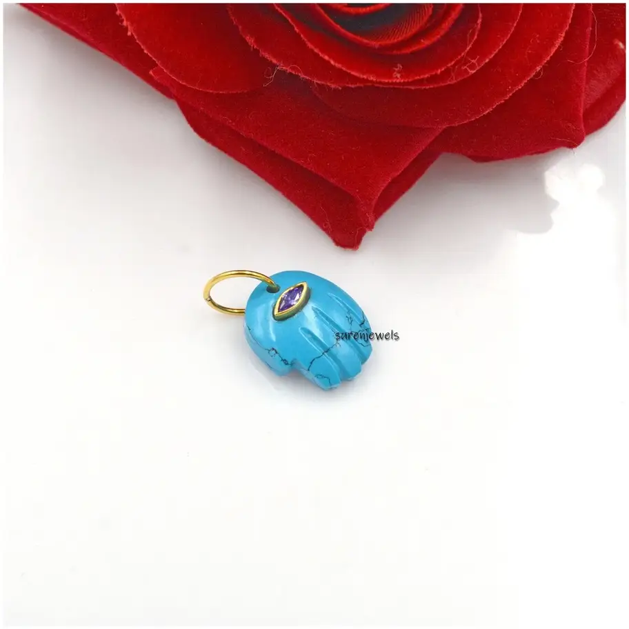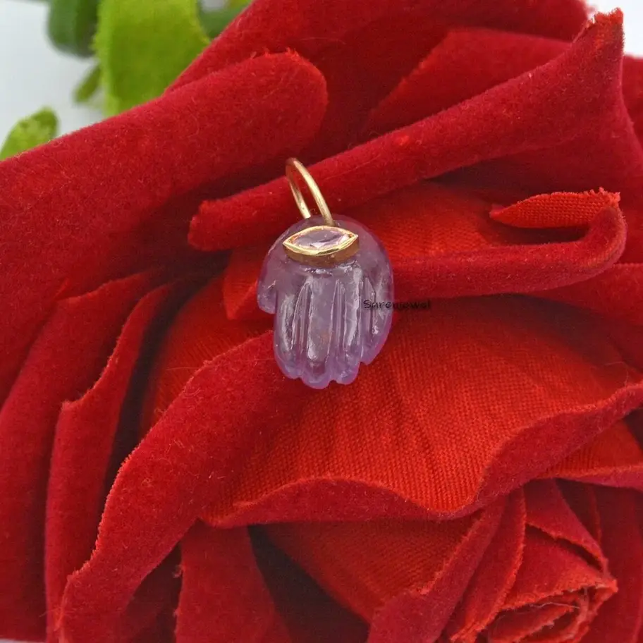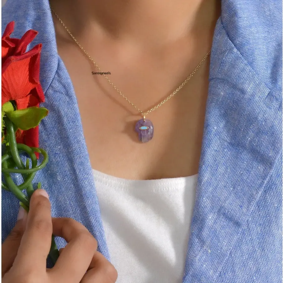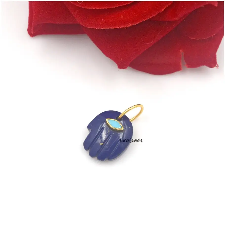 Discover our exquisite 14k gold gemstone Hamsa hand pendant, featuring amethyst and lapis. Handcrafted with precision, these designer Hamsa pendants symbolize protection and elegance. Perfect for charm holders, necklaces, and custom jewelry. Wholesale available at Suren Jewels.