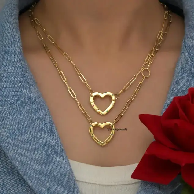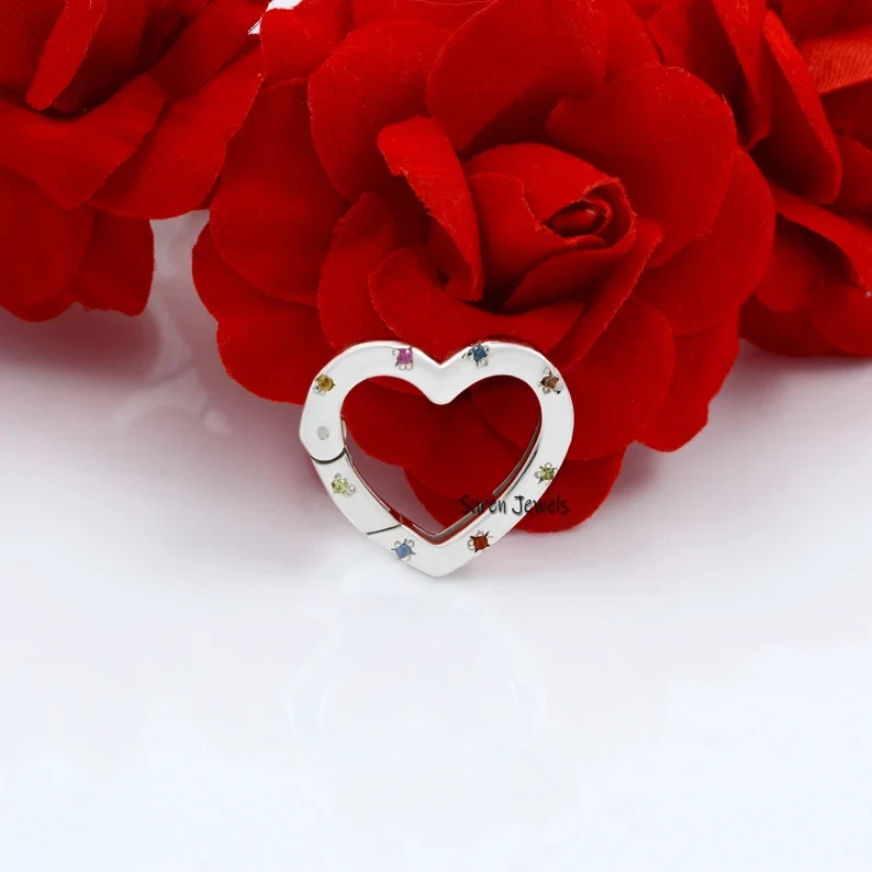 Elevate your jewelry collection with this 14K Gold Heart Enhancer, featuring a gemstone heart and diamond charm. Perfect for adding elegance to necklaces or bracelets.