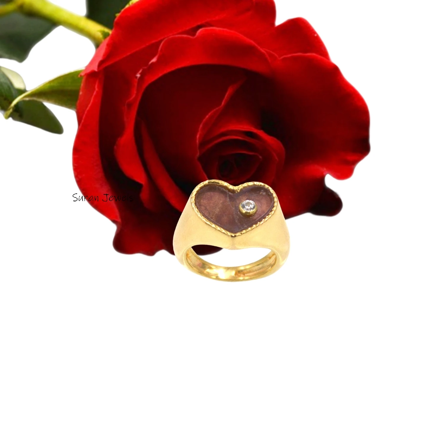 Express love and elegance with our 14K Gold Gemstone Heart Signet Ring. A timeless design with a vibrant gemstone. Wholesale from Suren Jewels.