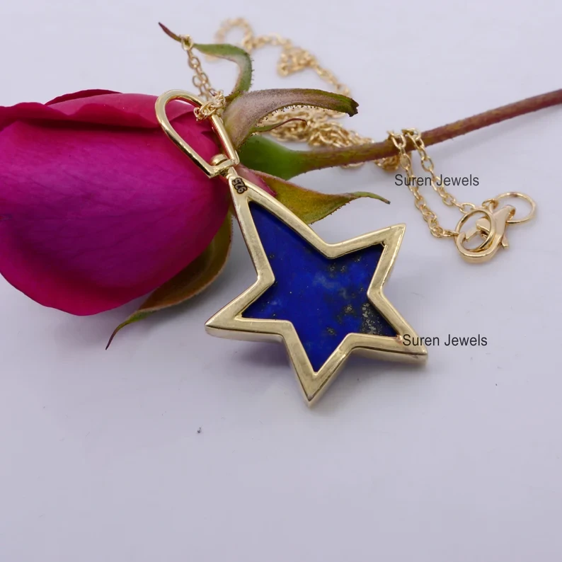 Suren Jewels presents 14k gold gemstone star pendants, featuring Lapis Lazuli and Turquoise. These solid gold star charms add elegance to any jewelry piece, perfect for charm holders and necklaces.