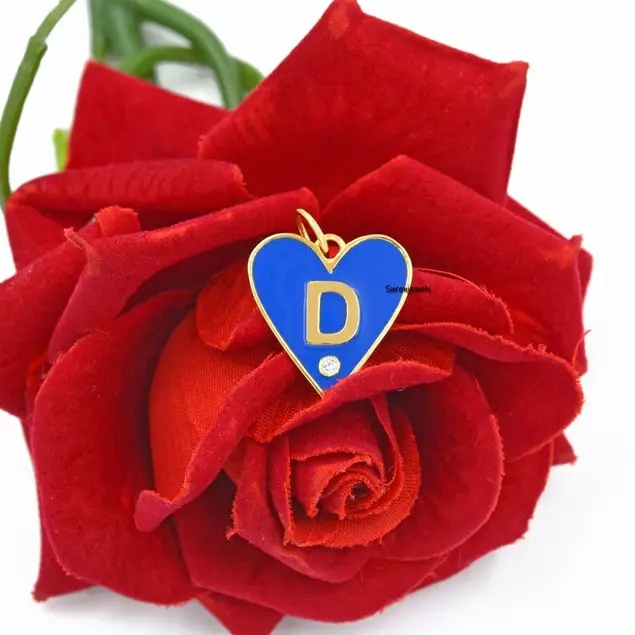Elegant 14K gold heart charm pendant, available in enamel, stone, and initial designs. Perfect for charm holders and necklaces. Wholesale handcrafted jewelry from Suren Jewels, your trusted source since 2020.