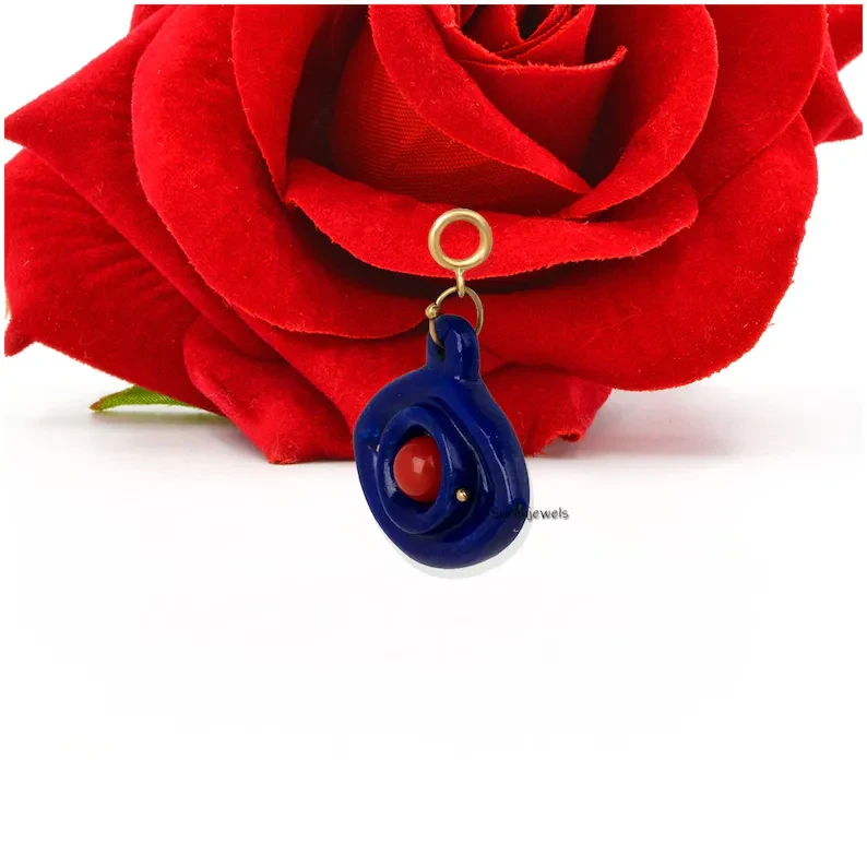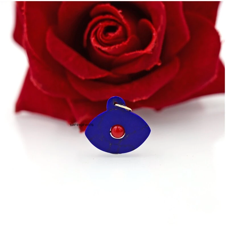 Handcrafted in 14K gold, this stunning Lapis Lazuli Evil Eye charm offers elegance and protection. A perfect addition to charm holders, necklaces, or bracelets. Wholesale available at Suren Jewels.