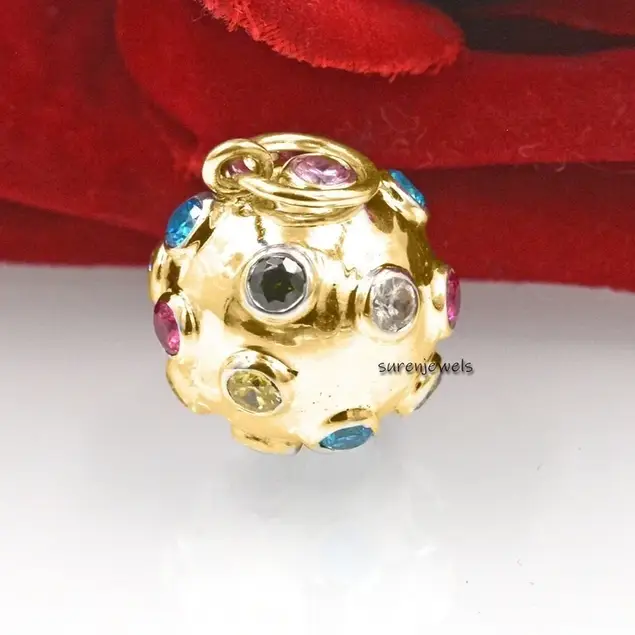 This exquisite 14K gold multi-gemstone ball pendant showcases a vintage Sputnik-inspired design. A perfect charm holder addition, blending elegance with timeless beauty. Wholesale available at Suren Jewels.