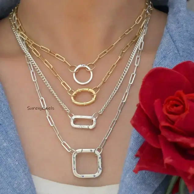 Elevate your jewelry with our 14K Gold Multi Gemstone Charm Holder. Perfect for pendants and charms, this enhancer lock adds elegance and versatility to any necklace.