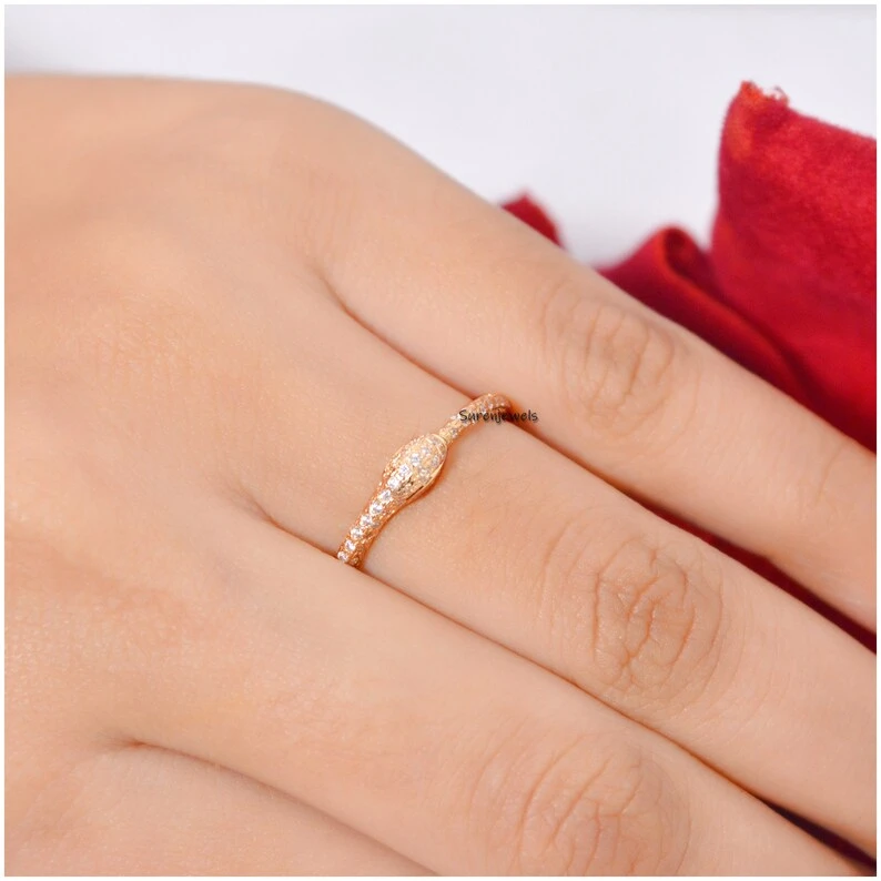 Elegant 14K gold Ouroboros snake ring with diamond accents. Dainty serpent design symbolizes eternity. Shop wholesale at Suren Jewels, your trusted jewelry source since 2020.