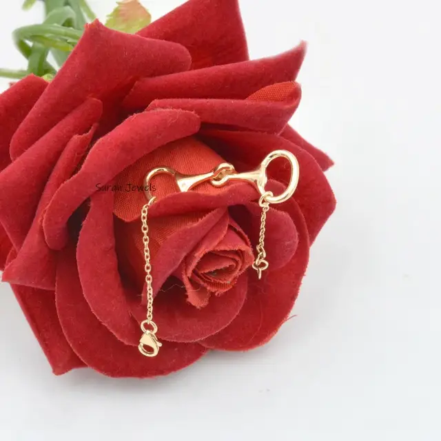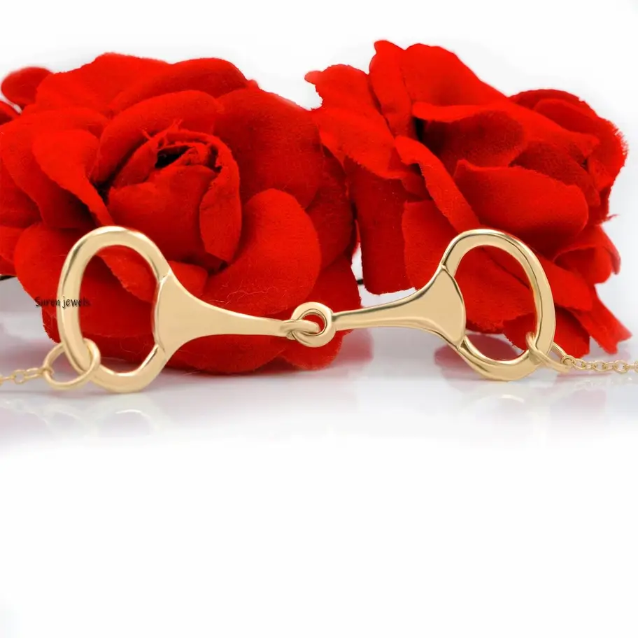 Crafted in 14K gold, this snaffle bit bracelet is a timeless piece for horse lovers. Its elegant equestrian design symbolizes strength and style, making it a perfect statement accessory or gift. available.