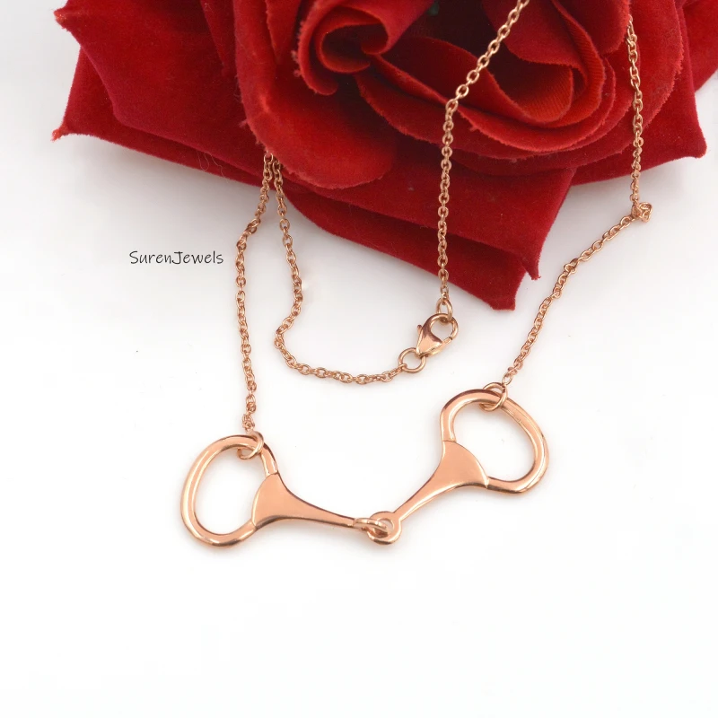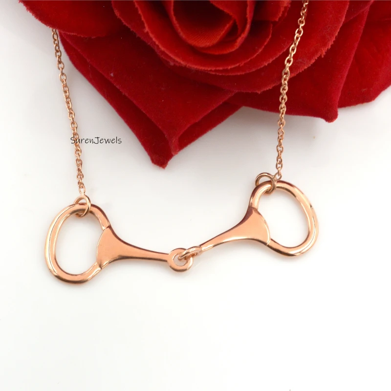 Crafted in 14K gold, this snaffle bit necklace is a refined equestrian charm, perfect for horse lovers. A designer piece, it embodies equitation elegance, making it a stunning addition to any jewelry collection.