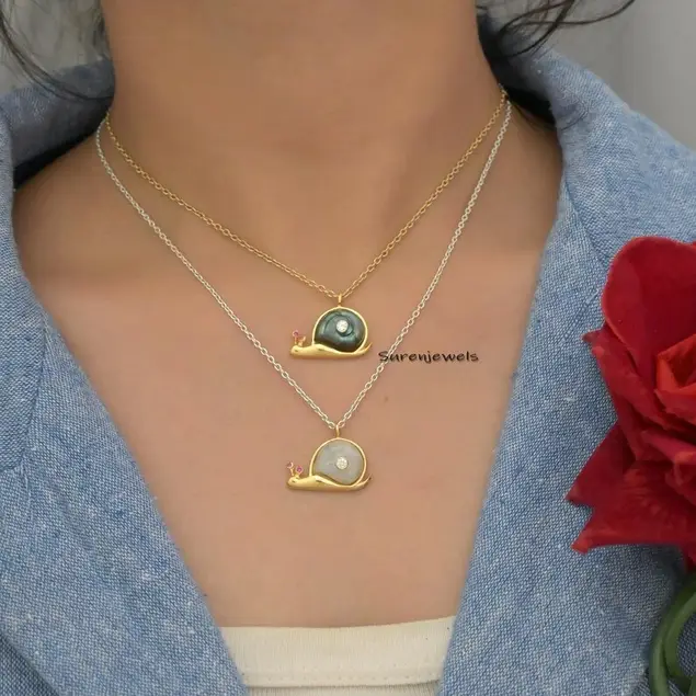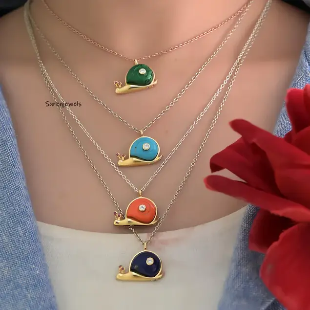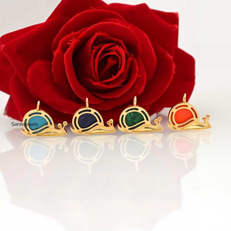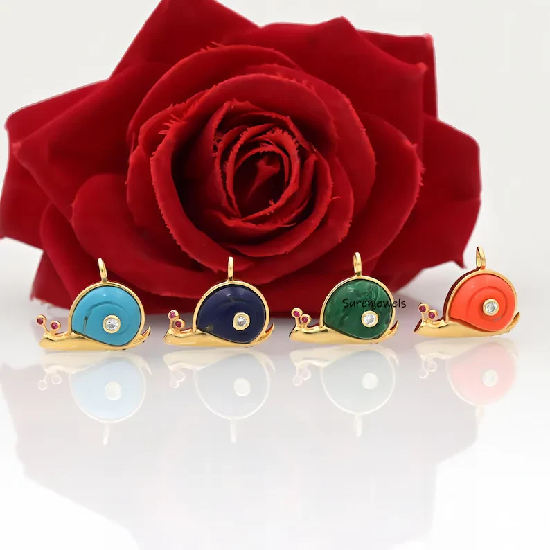 Elevate your jewelry collection with our 14k gold snail pendant. Handmade with exquisite gemstones and a charming mushroom design, this unique piece adds a whimsical touch to any necklace or charm holder.