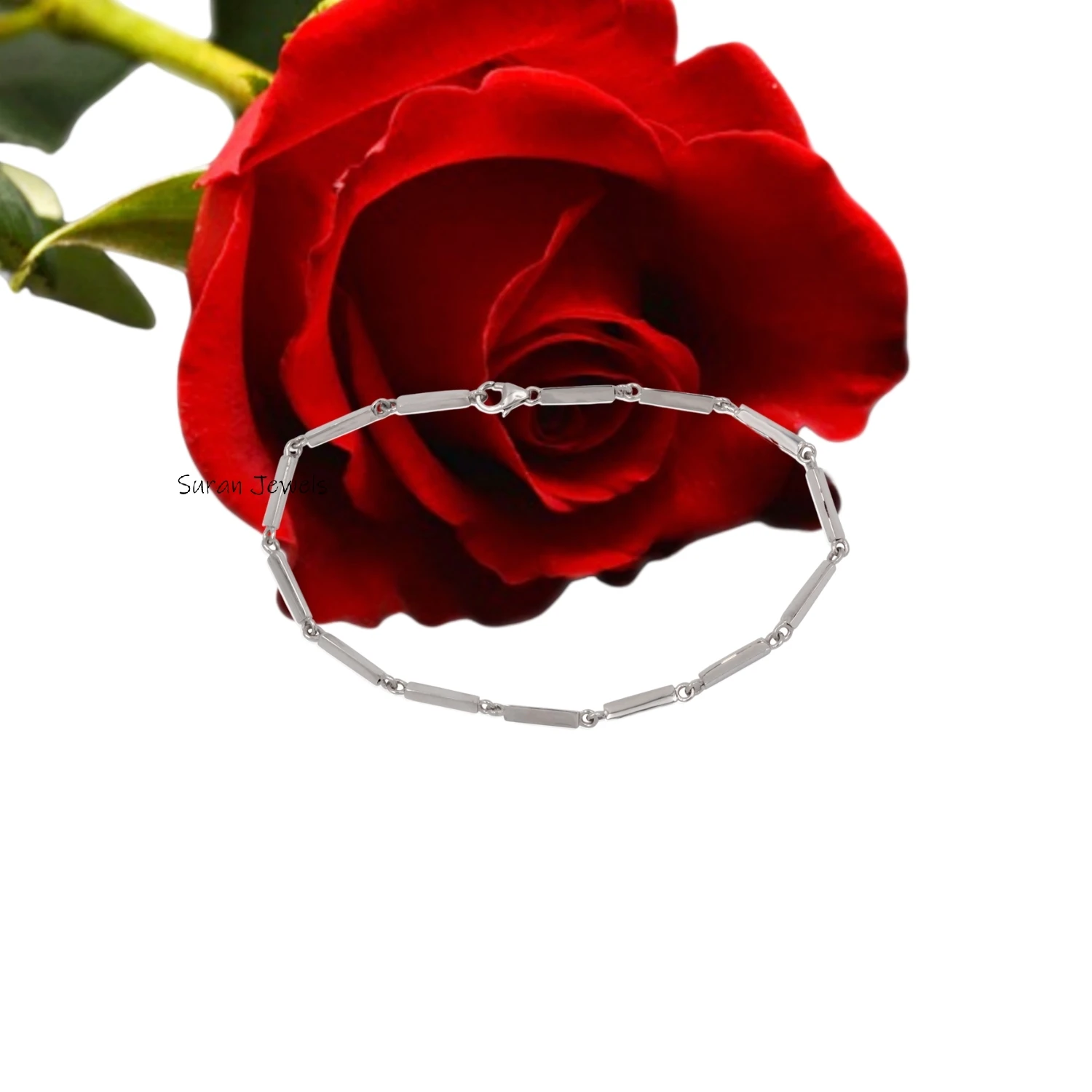Elevate your jewelry collection with this 14K Gold Tube Bar Link Chain Bracelet. Crafted from solid gold, this elegant bar link bracelet is perfect for Your Collection. Suren Jewels.