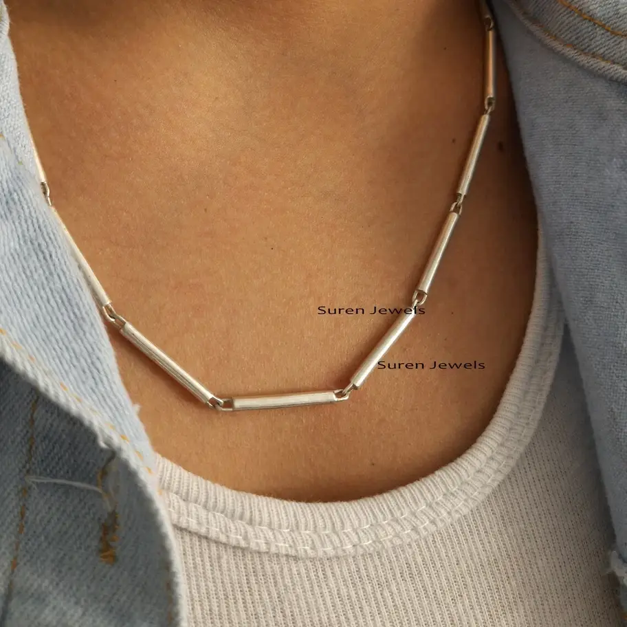 Elevate your jewelry collection with our 14K Gold Tube Link Bar Chain. Featuring a sleek, large-link design, this chain is perfect for charm holders and layering.