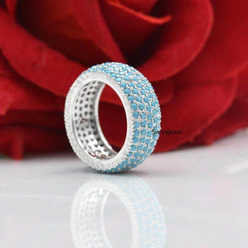 Exquisite 14K gold Turkish turquoise 5 row band ring. A stunning eternity design with vibrant gemstones. Perfect for wholesale buyers seeking unique, luxurious jewelry.