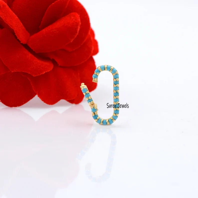 Elevate your collection with this 14K gold turquoise charm holder pendant and enhancer. Featuring an elegant oval lock, perfect for adding a unique touch to your jewelry designs.