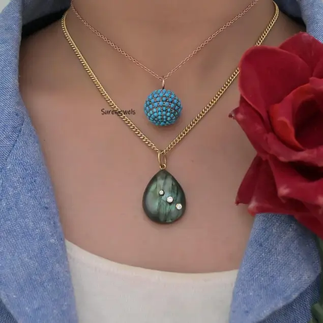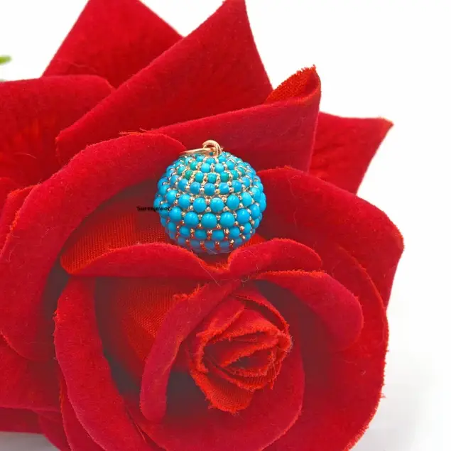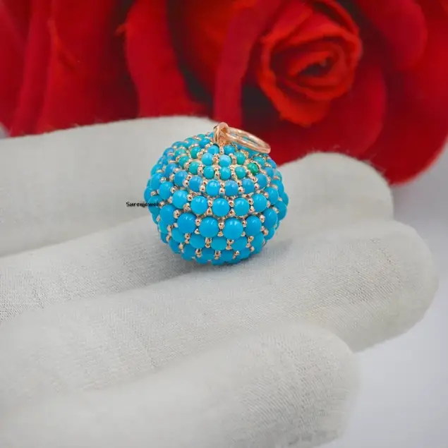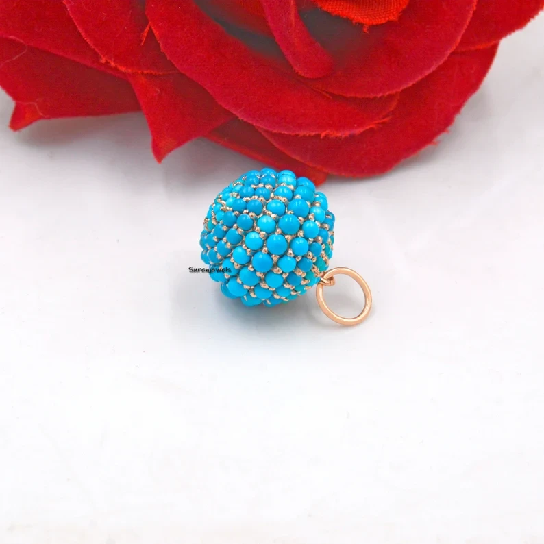 Elegant 14K gold turquoise gemstone ball charm pendant. Handmade with vintage appeal, this designer piece is perfect for charm holders, necklaces, or bracelets. A timeless wholesale jewelry addition from Suren Jewels.