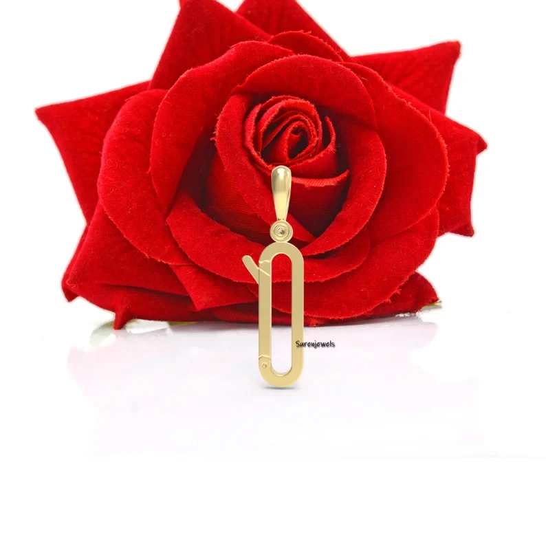 Handcrafted 14K gold connector lock with white topaz, perfect for securely holding charms. A stylish push-lock charm holder, ideal for custom jewelry creations. Wholesale pricing available at Suren Jewels.