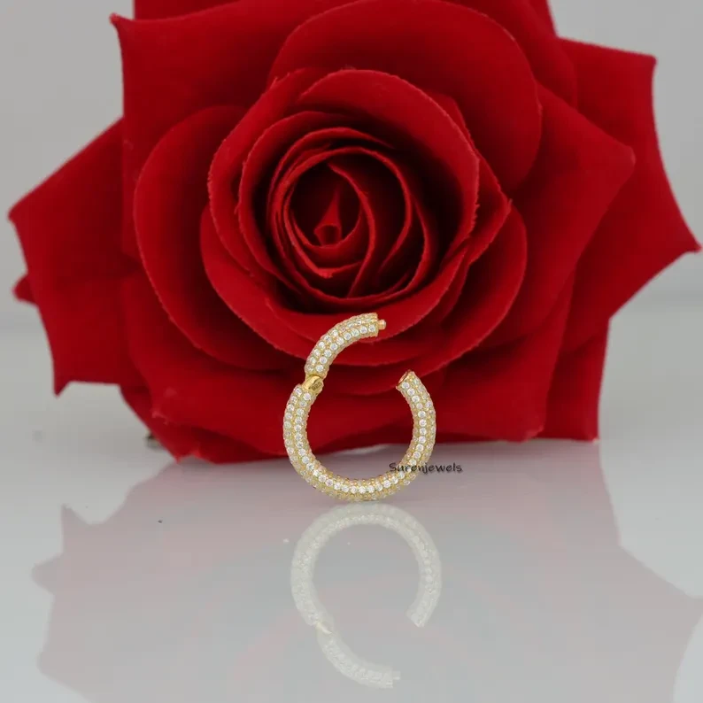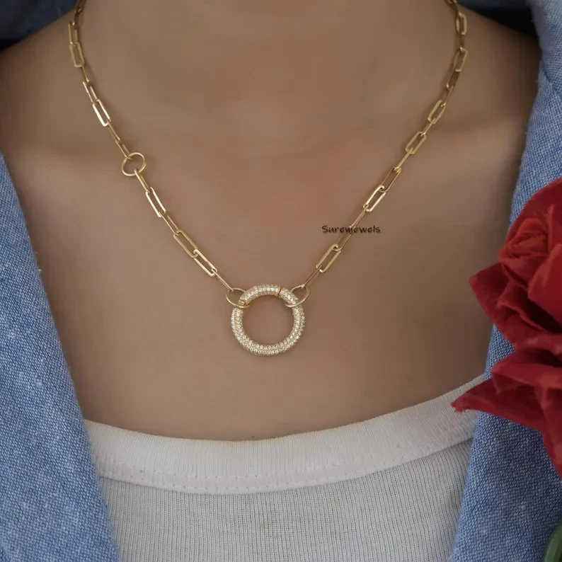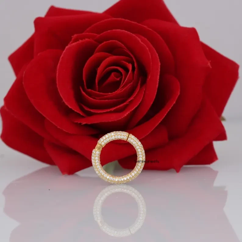 Enhance your jewelry with this 14K solid gold diamond circle clicker charm connector. A durable, elegant elongated round enhancer, perfect for charm pendants and chain upgrades. Wholesale available at Suren Jewels.