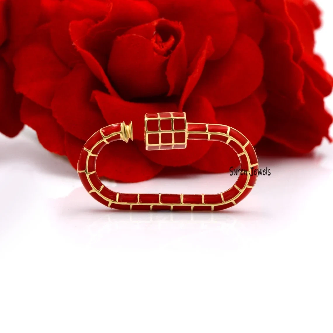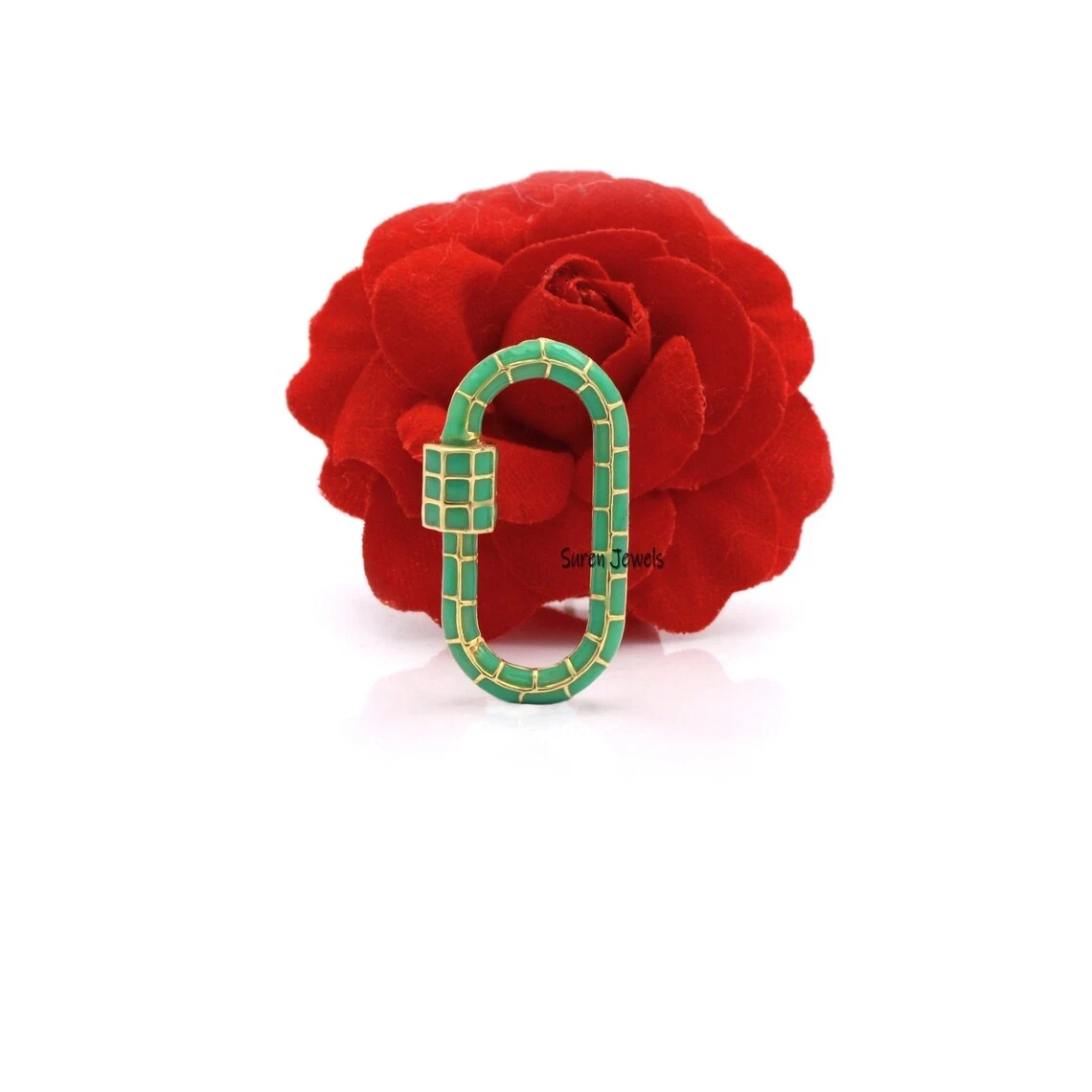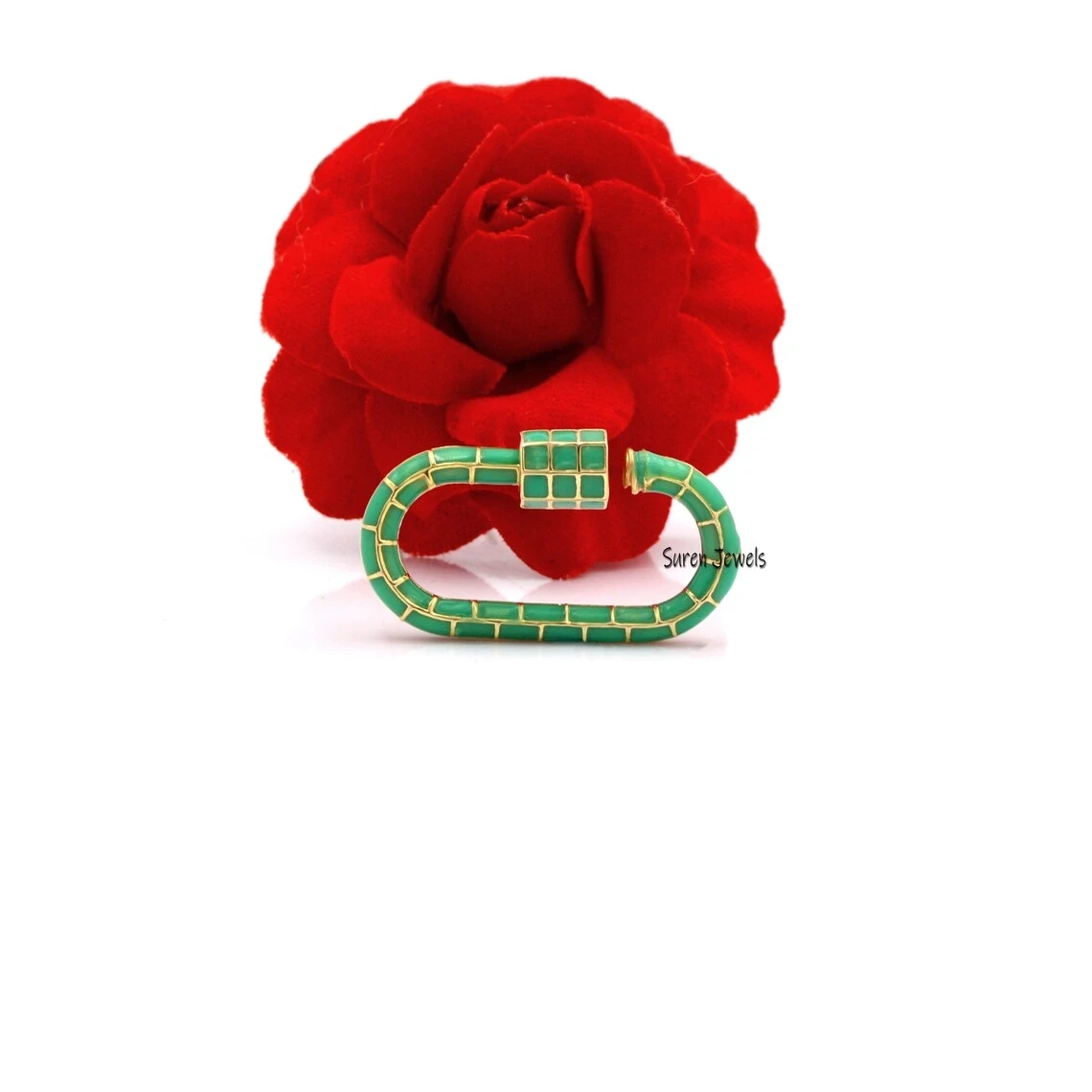 Elevate your jewelry collection with our 14K solid gold enamel carabiner. Featuring a gemstone design, this elegant carabiner lock is perfect for charm holders, necklaces, and bracelets. pricing available at Suren Jewels.