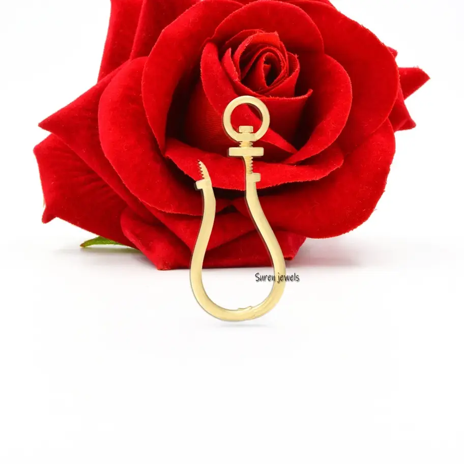 Enhance your jewelry with this 14k solid gold multi-charm Lock & Clasp Jewelry. Designed as a carabiner lock, it securely connects and displays multiple charms or pendants. Perfect for versatile styling and adding elegance to any necklace.