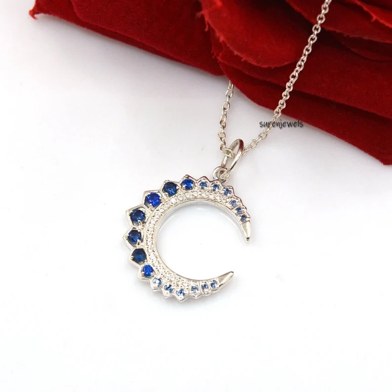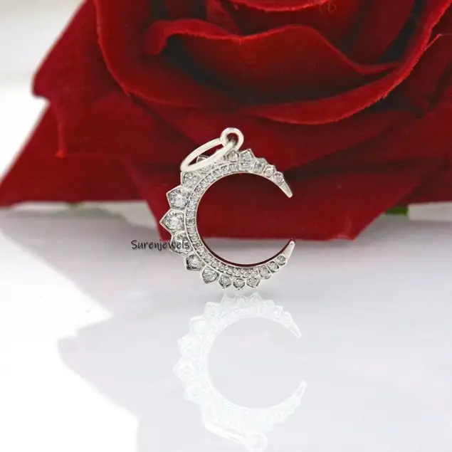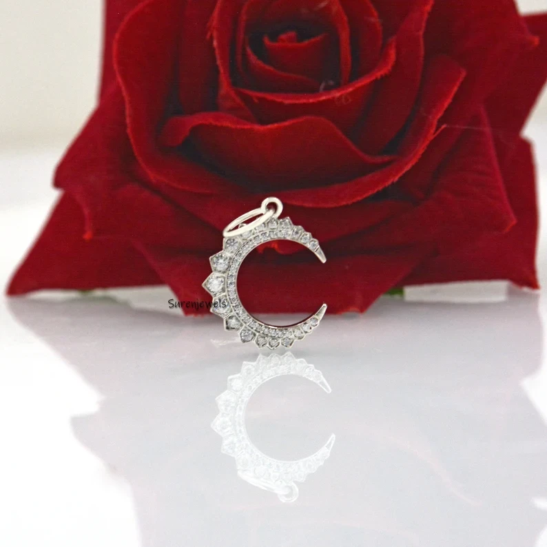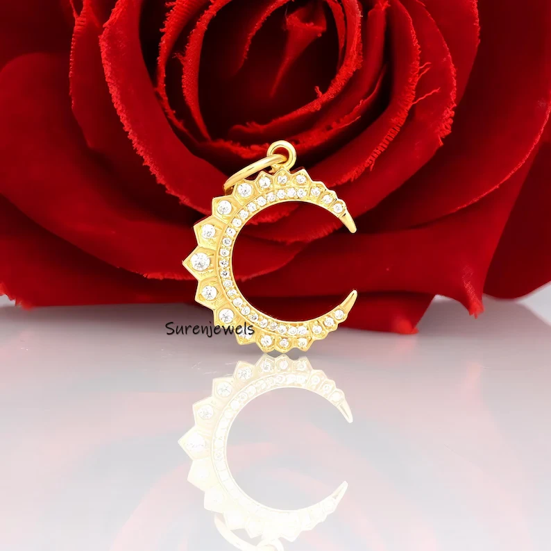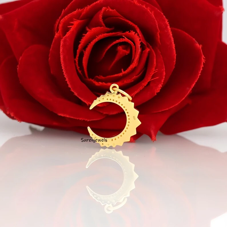 Crafted in 14k solid gold, this turquoise crescent pendant features sparkling diamonds. A perfect celestial charm, ideal for elegant necklaces. Wholesale pricing available at Suren Jewels.