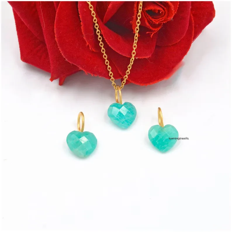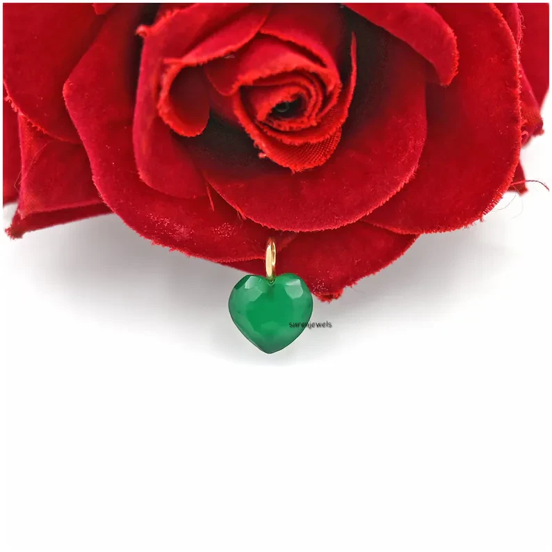 Elegant 14K solid gold heart charm featuring turquoise or malachite. A perfect designer pendant for charm holders, necklaces, or bracelets. Wholesale gemstone jewelry from Suren Jewels.