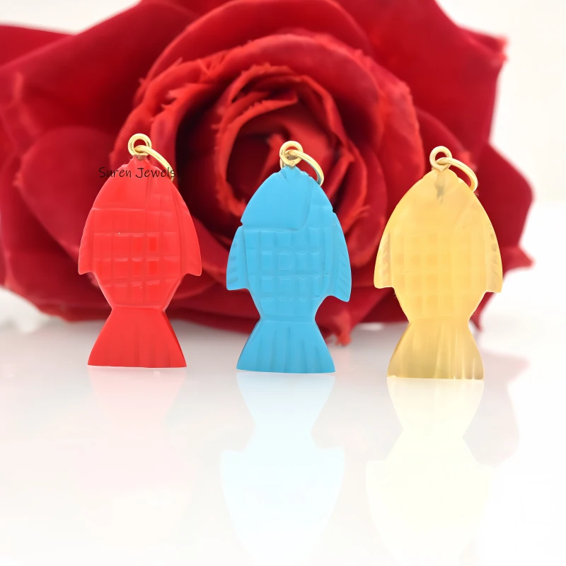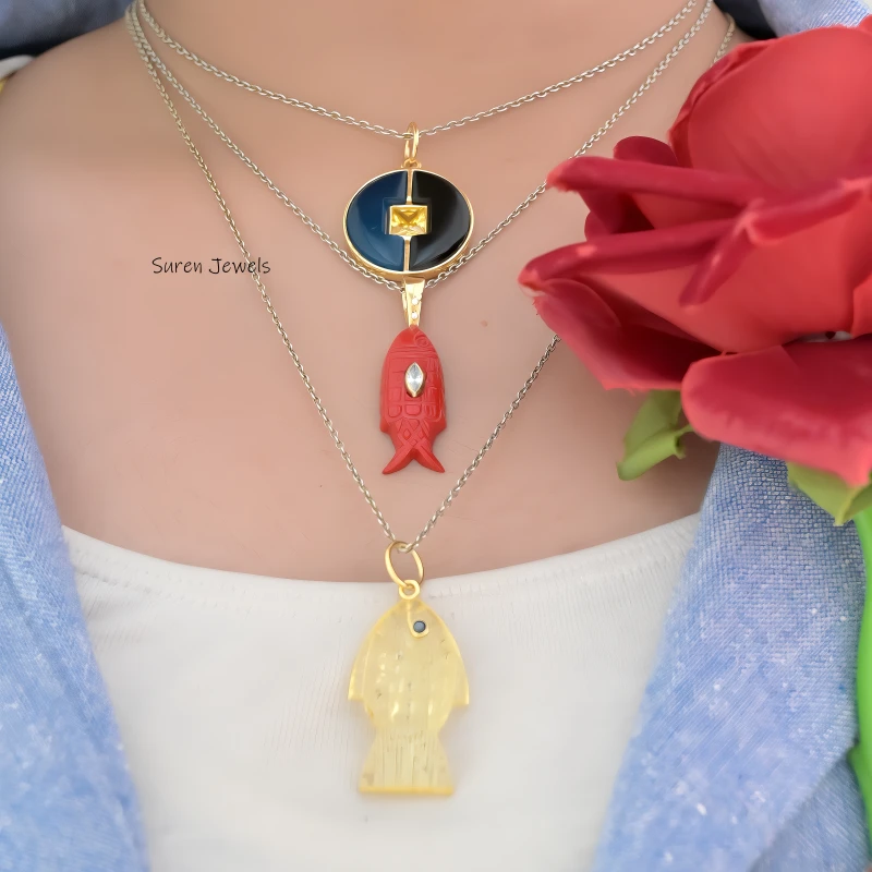 14K Yellow Gold Yellow Quartz & Black Cubic Zircon Fish Pendant