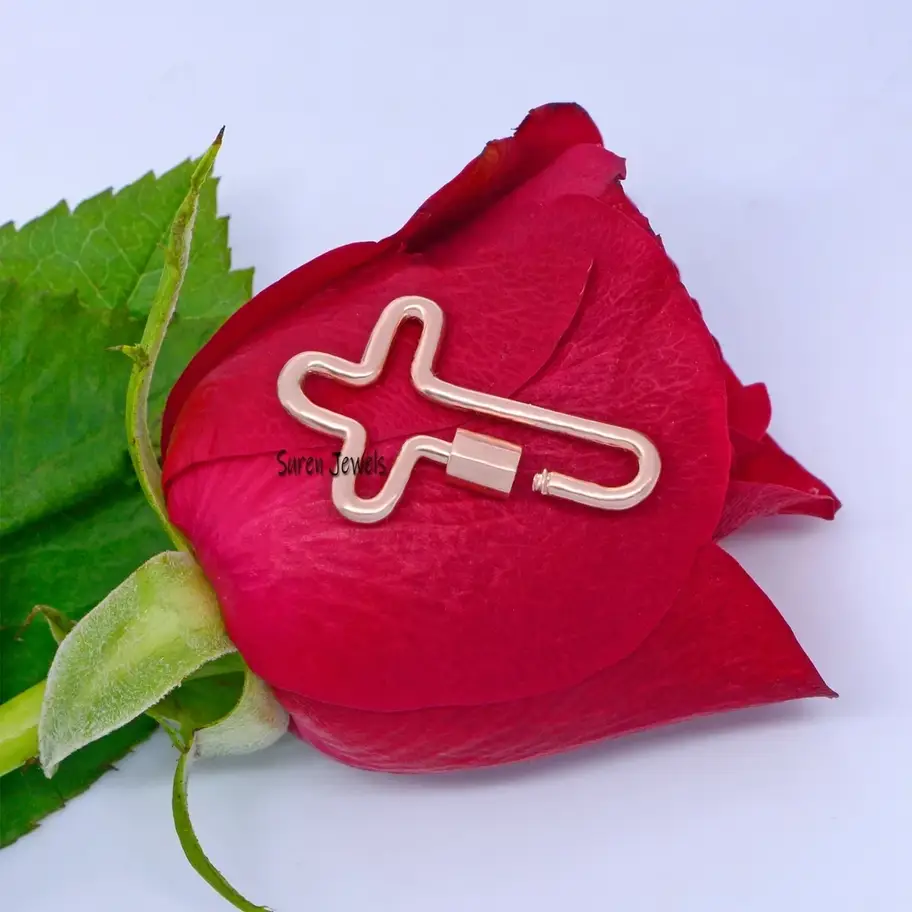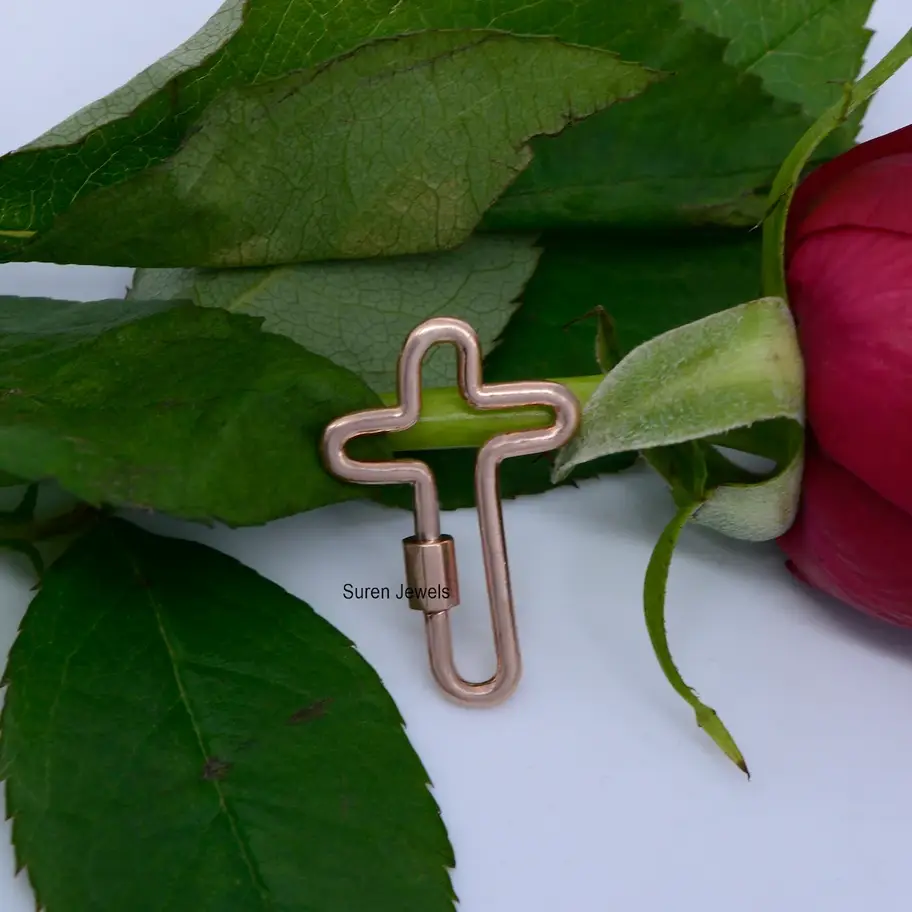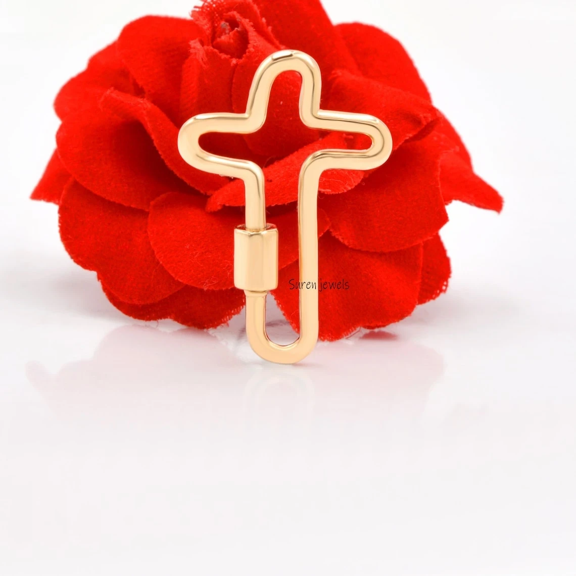 Enhance your jewelry collection with this 925 gold cross carabiner lock. Crafted from sterling silver, it offers a secure and stylish way to attach charms, pendants, or necklaces. Perfect for religious and elegant designs.