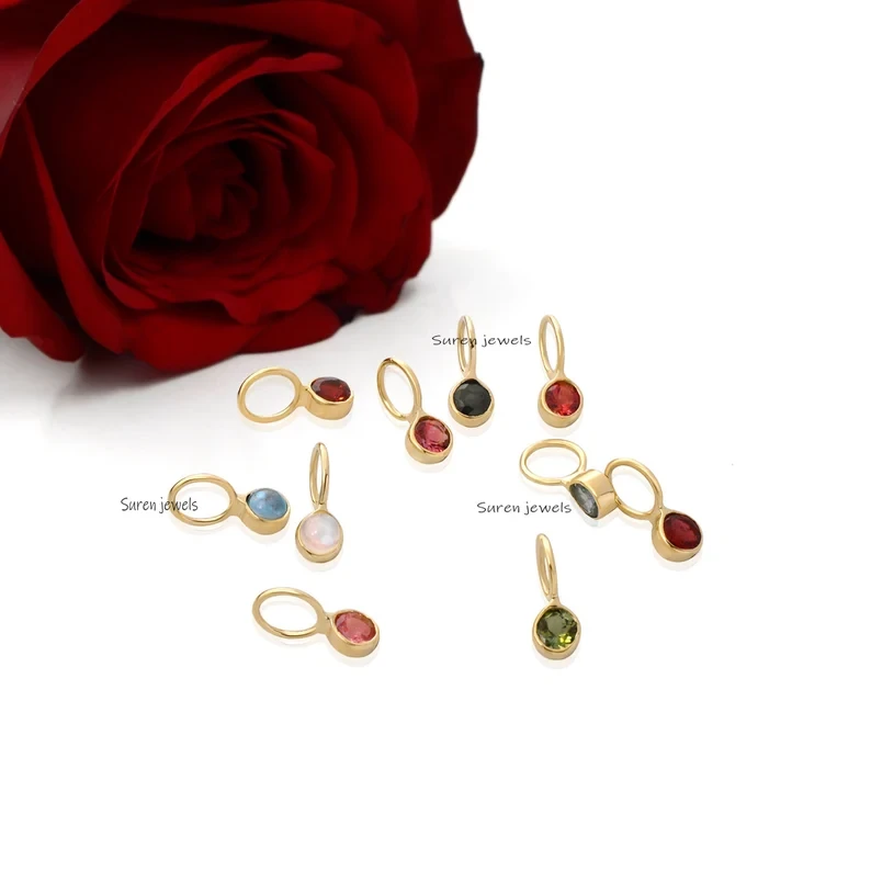 Elegant 925 silver birthstone drop pendant, perfect for charm holders and necklaces. This tiny gemstone drop charm adds a personalized touch to your jewelry collection. Wholesale available at Suren Jewels.
