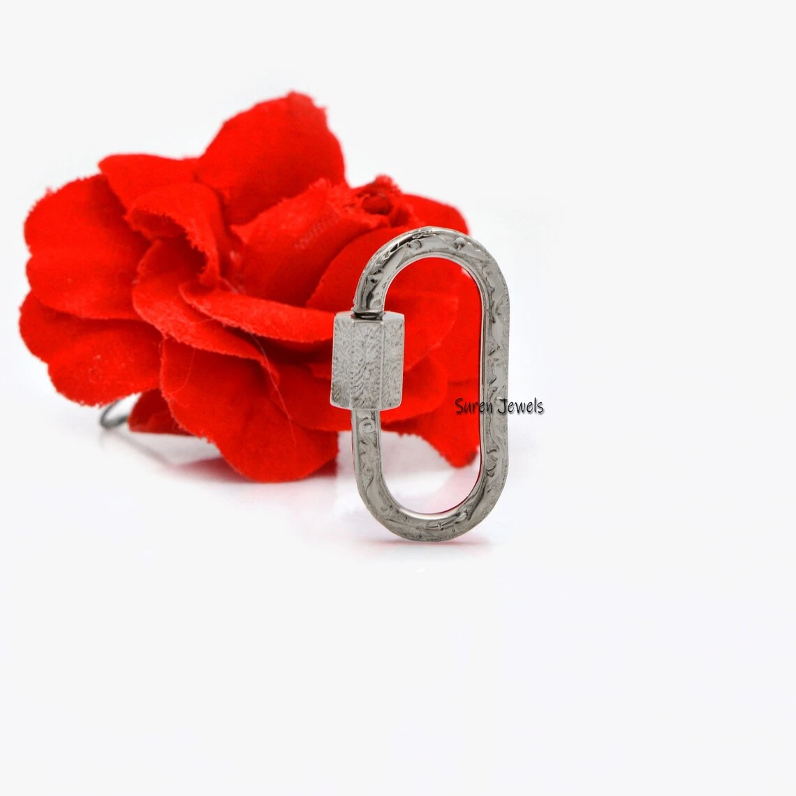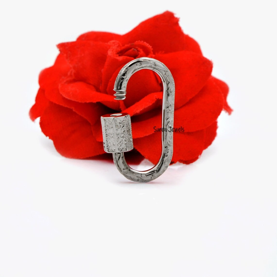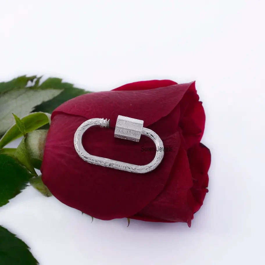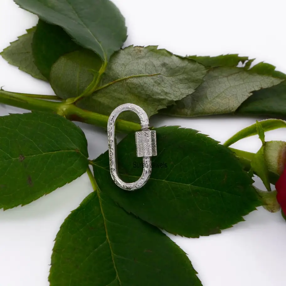 Discover our premium 925 silver carabiner lock, a stylish and secure charm holder. Perfect for necklaces and bracelets, this designer carabiner features intricate engraving, making it an elegant choice for wholesale jewelry collections.