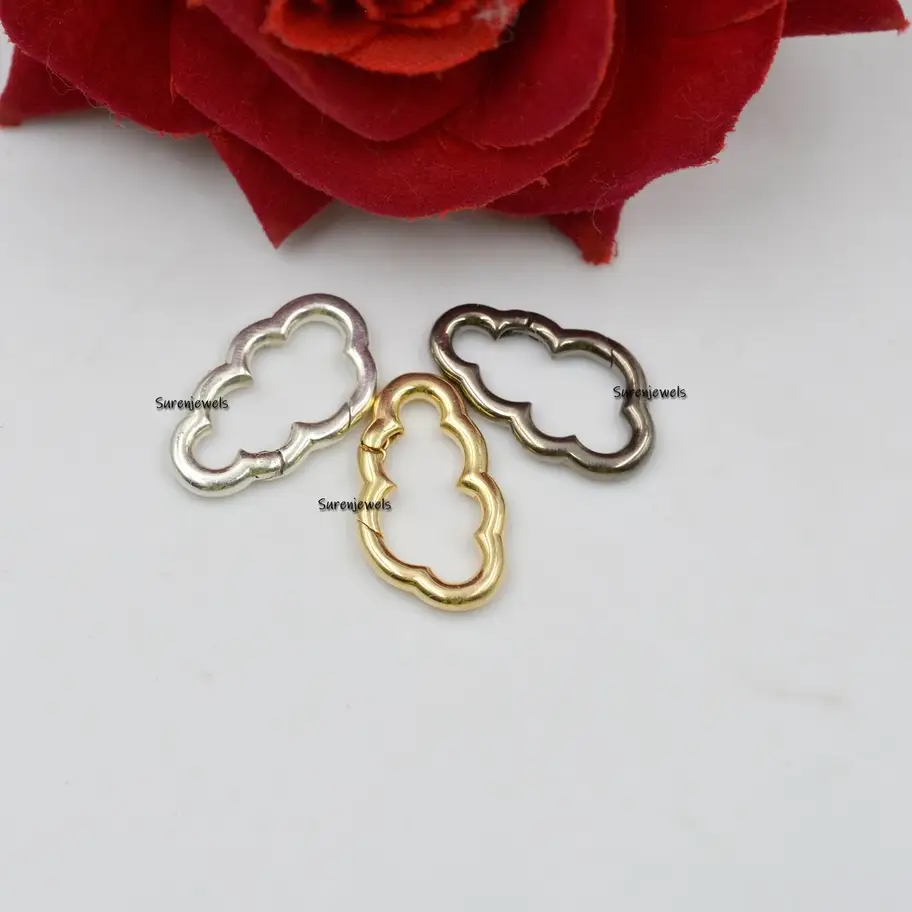 Crafted in high-quality 925 sterling silver, this cloud-shaped enhancer lock is perfect for securing charms and pendants. Its sleek push-lock mechanism ensures easy use, making it a versatile addition to any jewelry collection. Wholesale is available at Suren Jewels.
