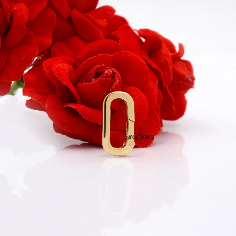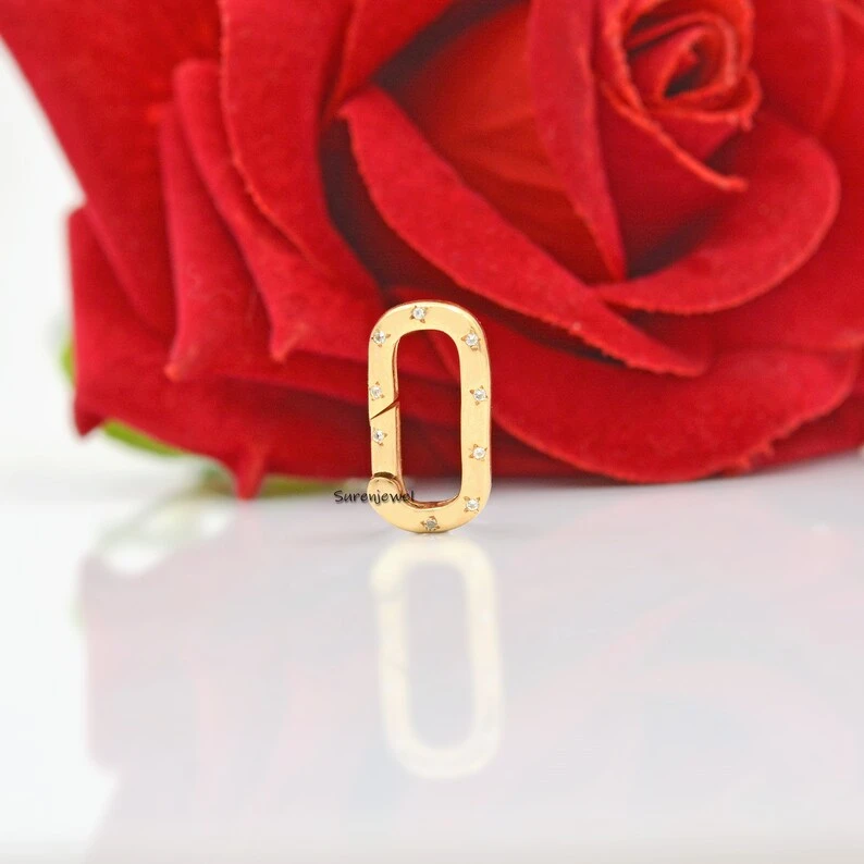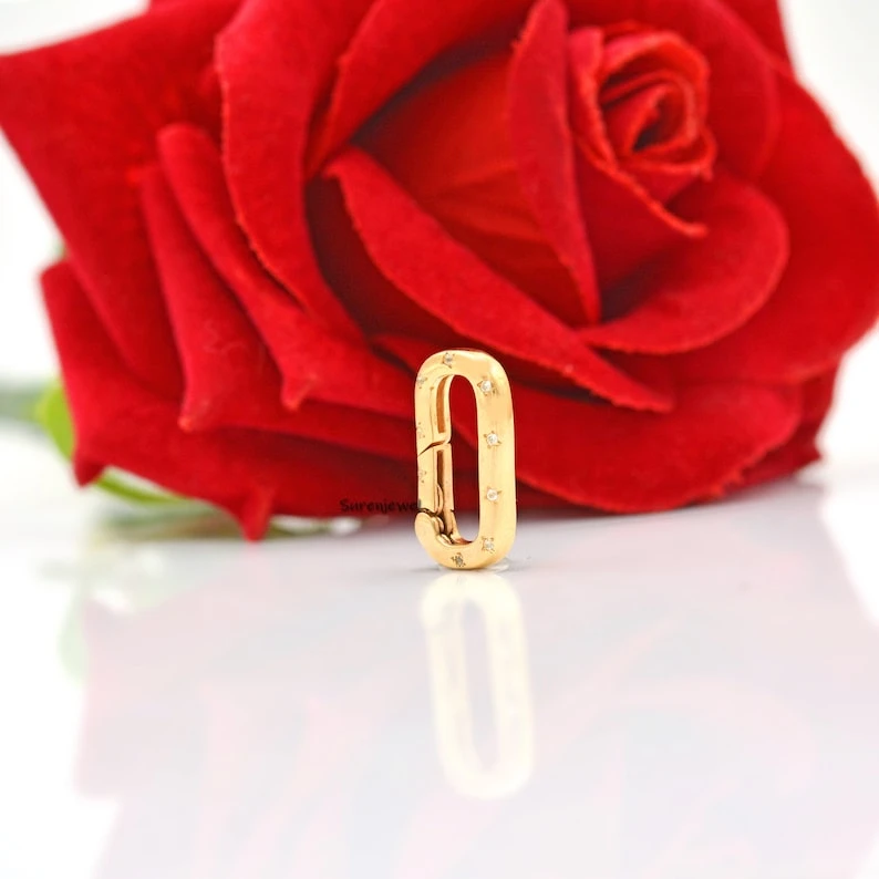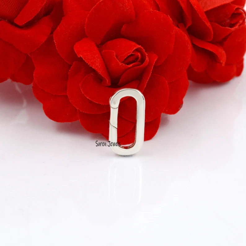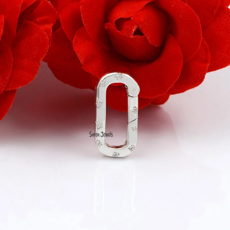 Enhance your jewelry collection with this 925 silver diamond charm holder featuring a pave diamond push lock and a double-sided oval design, perfect for creating custom pieces.