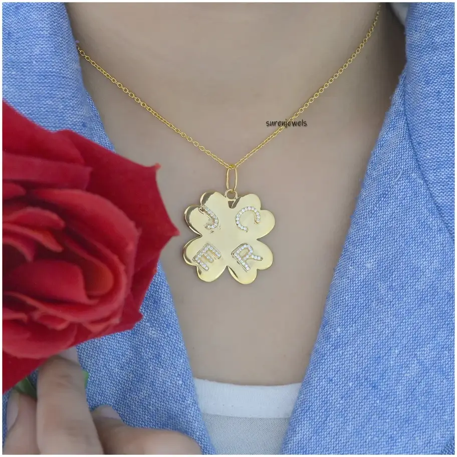Enhance your jewelry collection with our 925 Silver Diamond Flower Initial Pendant. Crafted in gold vermeil, this elegant letter charm features a delicate floral design, perfect for personalized styling.