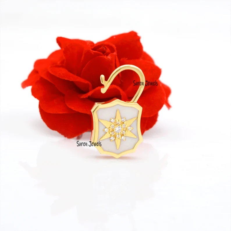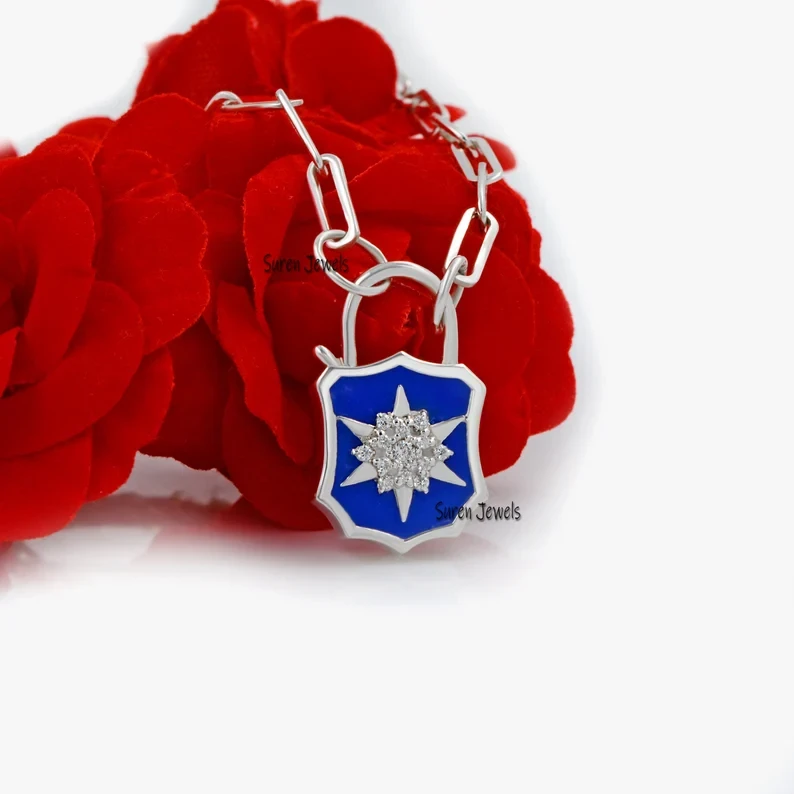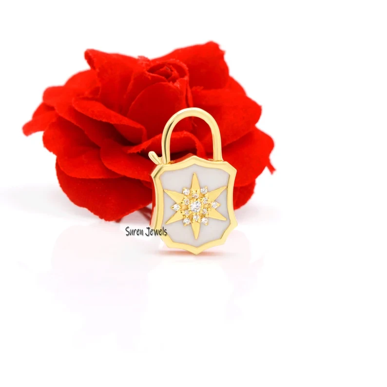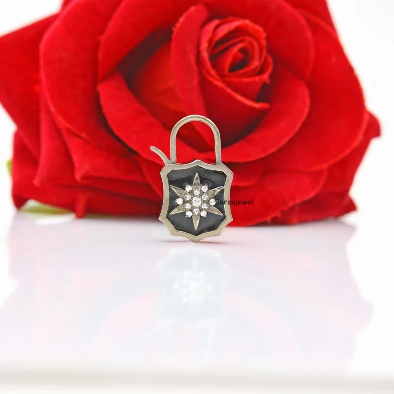 Discover our 925 silver enamel starburst padlock pendant, featuring a dazzling diamond design. A stylish, vintage-inspired jewelry piece, perfect as a charm holder or necklace accent. Wholesale available at Suren Jewels.