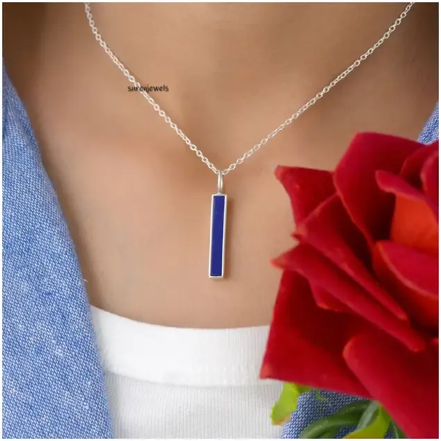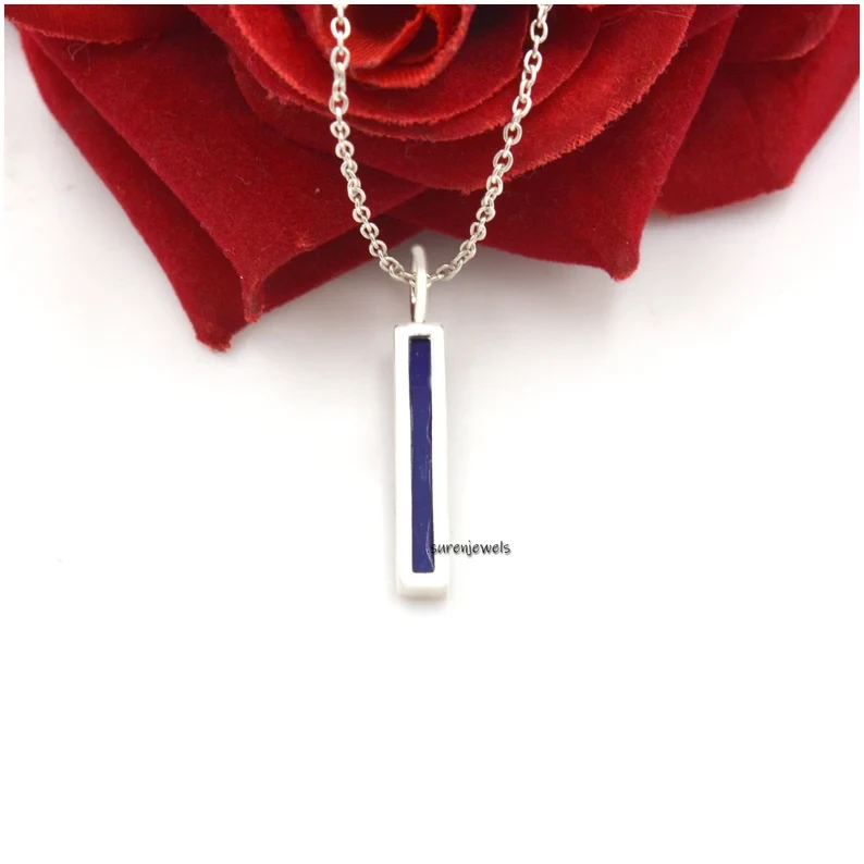 Elegant 925 silver gemstone bar pendant featuring Lapis Lazuli & Turquoise. Perfect for charm holders and necklaces. Wholesale solid silver jewelry crafted with quality by Suren Jewels since 2020.