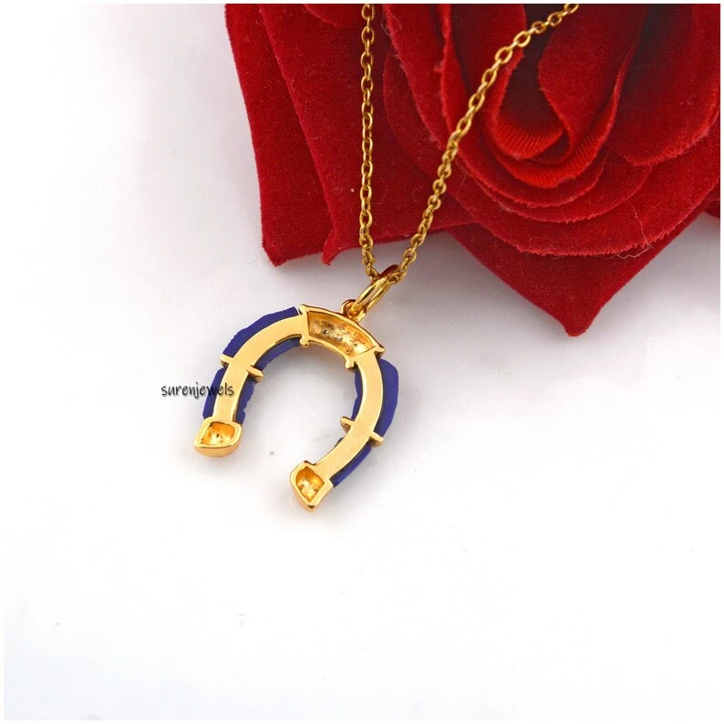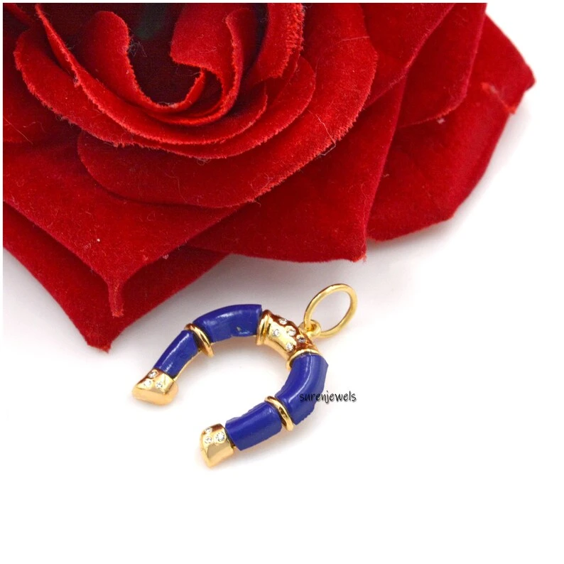 Crafted in 925 silver, this designer horseshoe pendant features moissanite and turquoise gemstones. A lucky charm, perfect for necklaces or bracelets. Wholesale pricing available at Suren Jewels.
