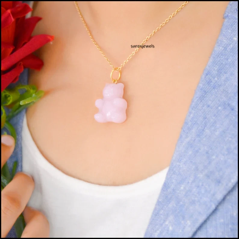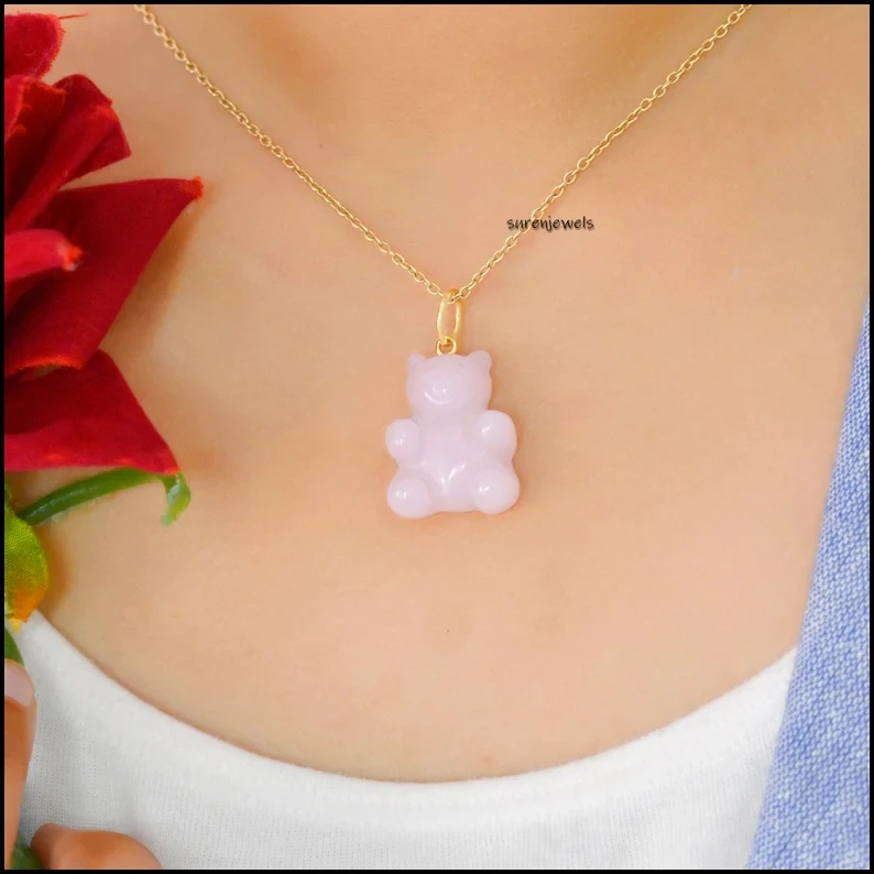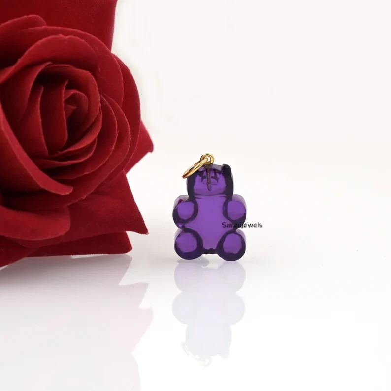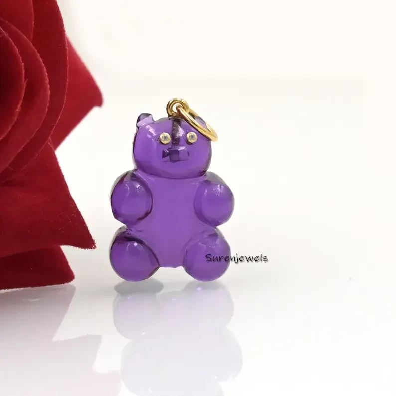 Adorable 925 silver gemstone jelly bear pendant, handcrafted with intricate carving. A perfect candy bear charm for necklaces, adding a playful touch to any jewelry collection. Wholesale available at Suren Jewels.